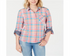 Camisa feminina Tommy Hilfiger com estampa xadrez e botões, tamanho médio, laranja