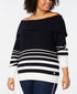 Camiseta feminina Tommy Hilfiger Color Block manga comprida ombro a ombro azul tamanho 1X