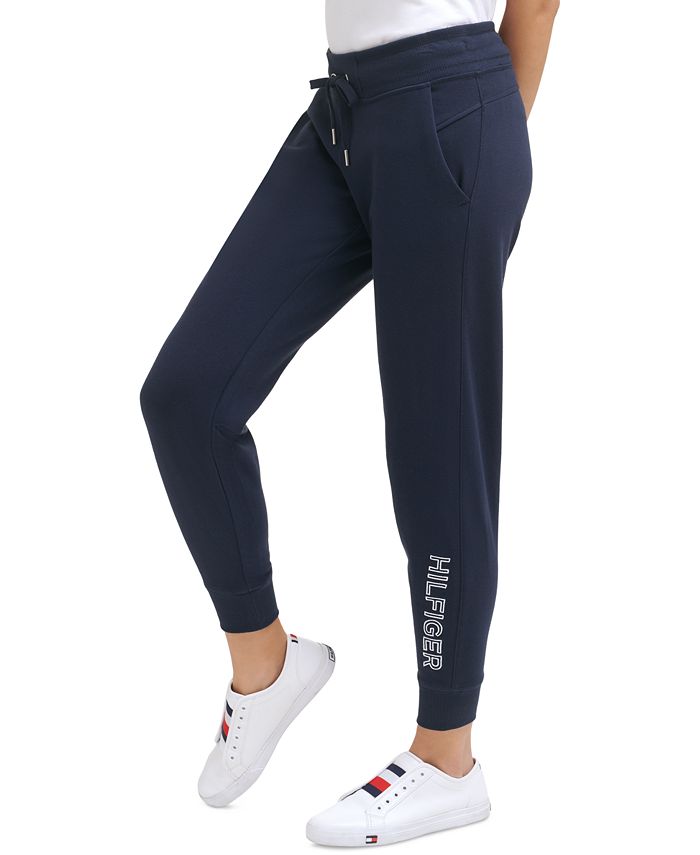 Calça de moletom feminina Tommy Hilfiger com logotipo bordado, em malha lisa, azul, tamanho X-S