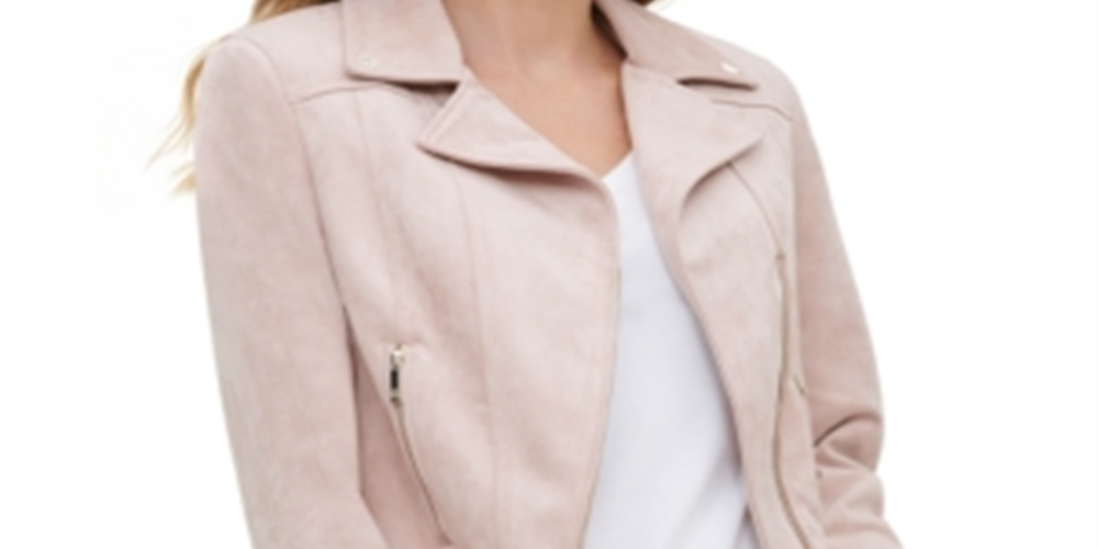 Jaqueta de motociclista feminina Tommy Hilfiger de camurça sintética rosa tamanho 14