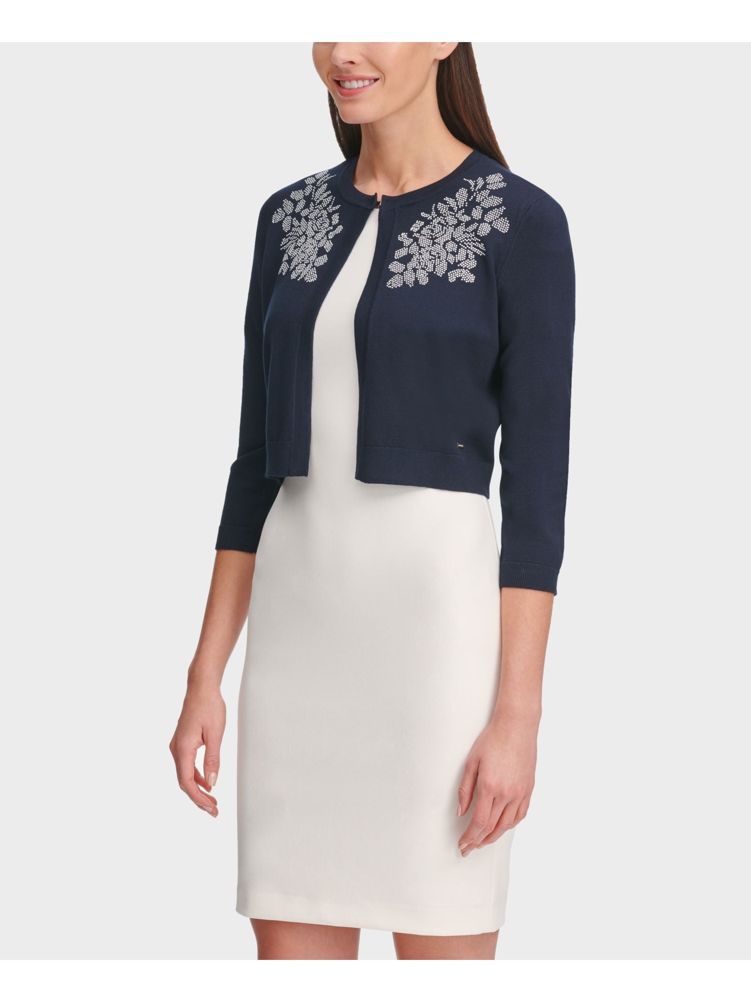 Tommy Hilfiger Cardigan Feminino Floral Manga Longa Aberto Azul Tamanho X-G