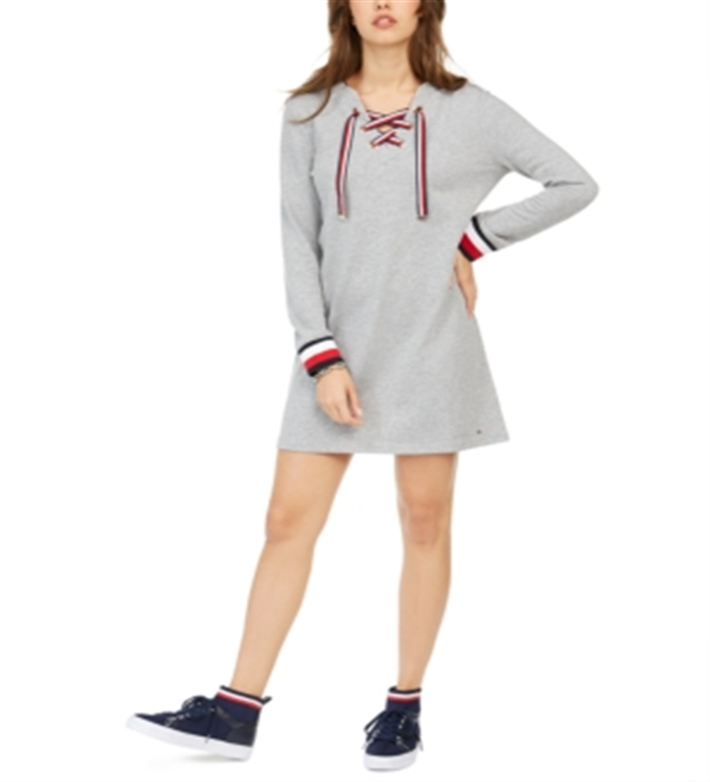 Vestido de moletom com capuz e cadarço Tommy Hilfiger feminino - Cinza, tamanho P