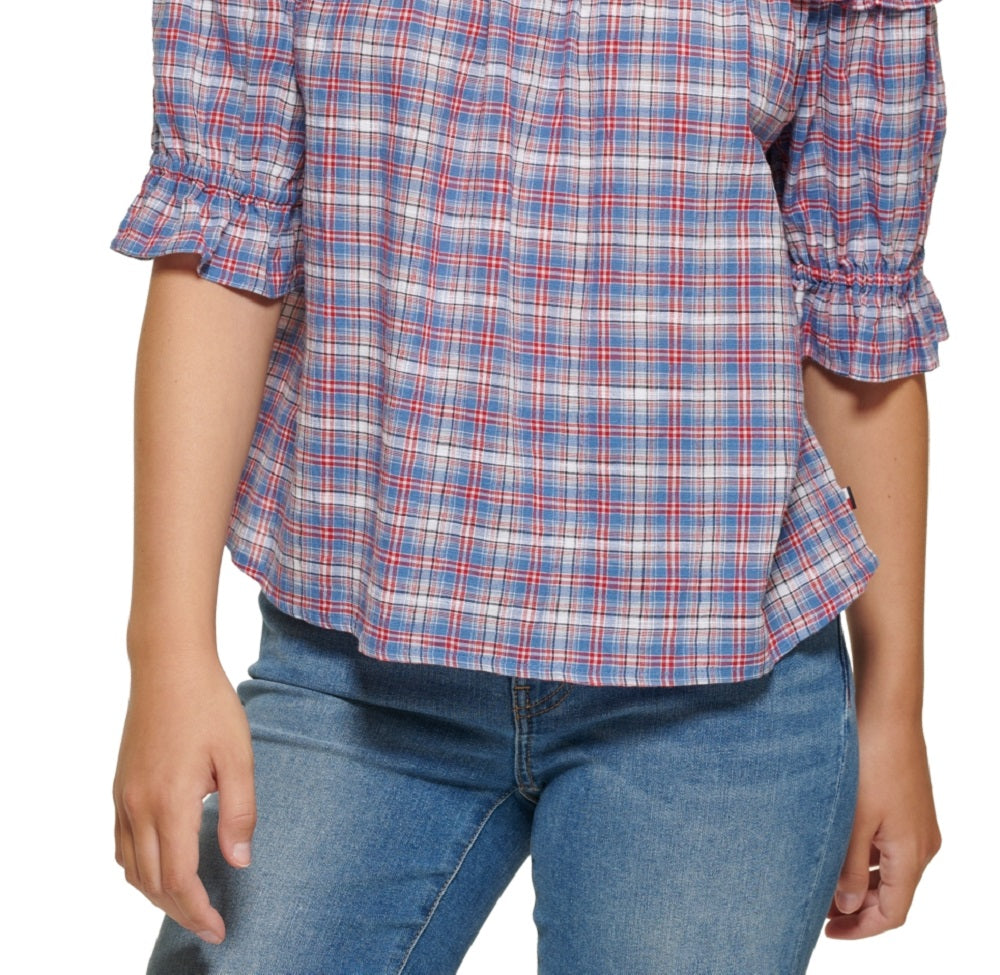 Tommy Hilfiger Blusa xadrez ombro a ombro feminina azul tamanho extragrande