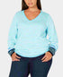 Tommy Hilfiger Suéter feminino plus size de algodão listrado com decote em V, azul, tamanho 2X