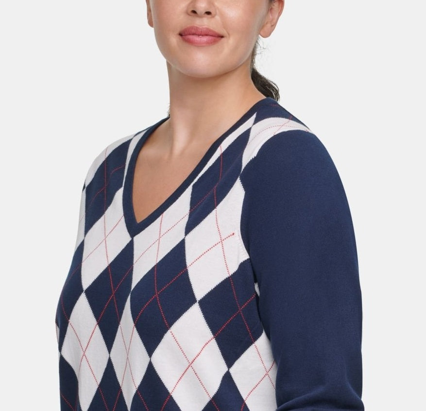 Suéter Tommy Hilfiger Plus Size Feminino Ivy Cotton Argyle Azul Tamanho 2X