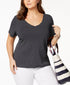 Camiseta Tommy Hilfiger Plus Size Feminina de Algodão com Bolinhas e Gola V Azul Tamanho 1X