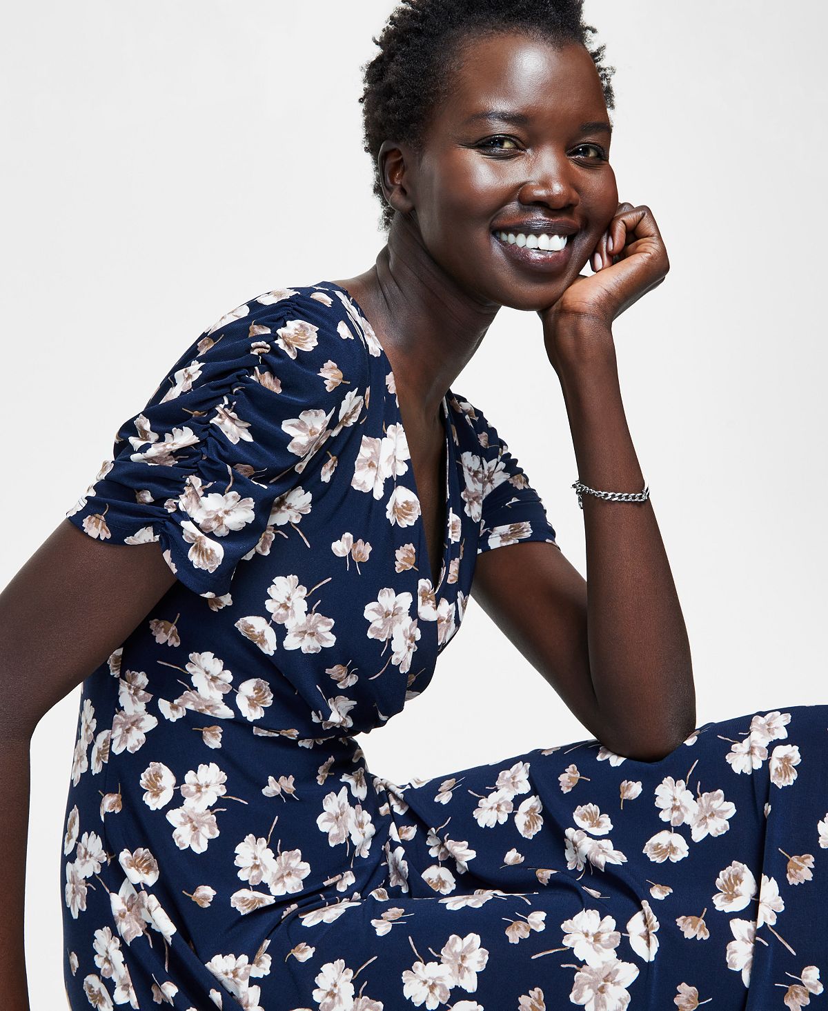 Franzido suave nas mangas e no corpete | este vestido pequeno Tommy Hilfiger com decote em V e sobrepeliz floresce em um charmoso jersey com estampa floral. | Mangas curtas com detalhe franzido | Malha jersey; Macio e elástico | Decote em V com sobrepeliz | Franzido na costura da cintura estilo império | Parcialmente forrado