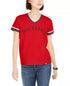 Camiseta Tommy Hilfiger Sport Feminina com Gola V e Estampa Vermelha Tamanho Grande
