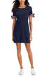 Vestido Tommy Hilfiger Feminino Manga Amarrada Decote Redondo Azul Tamanho Médio