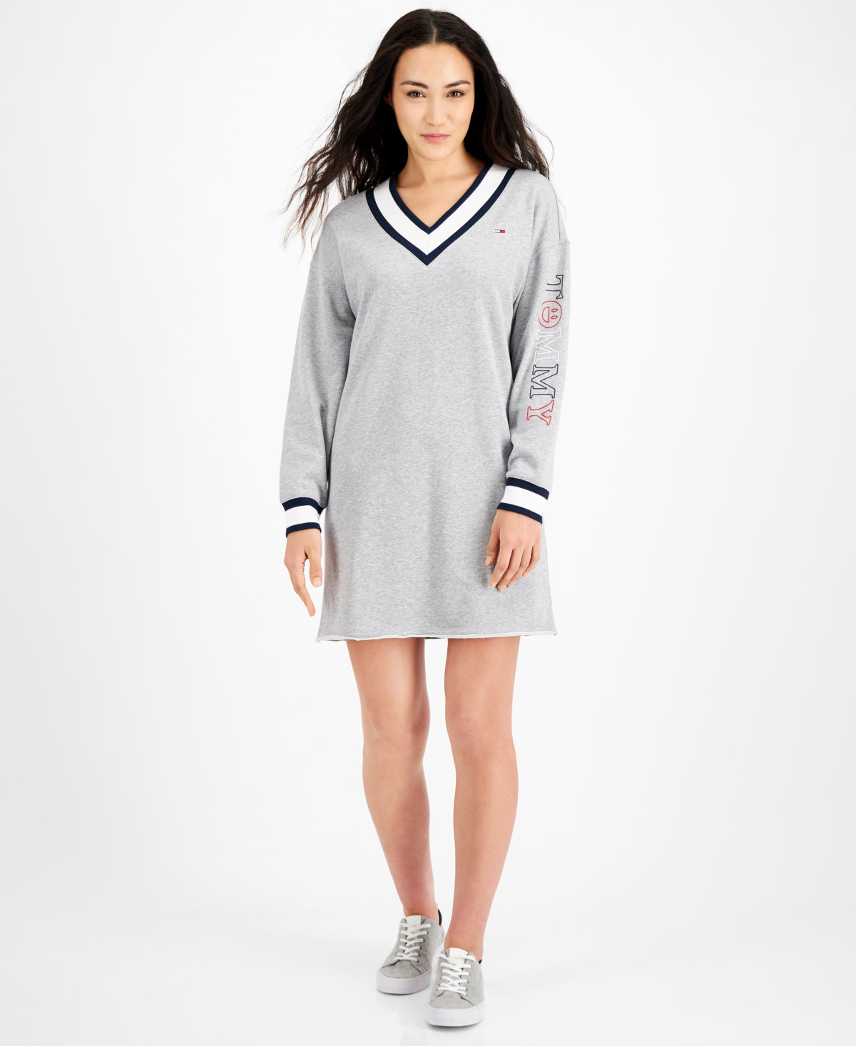 Vestido moletom feminino Tommy Jeans com acabamento contrastante, cinza, tamanho médio