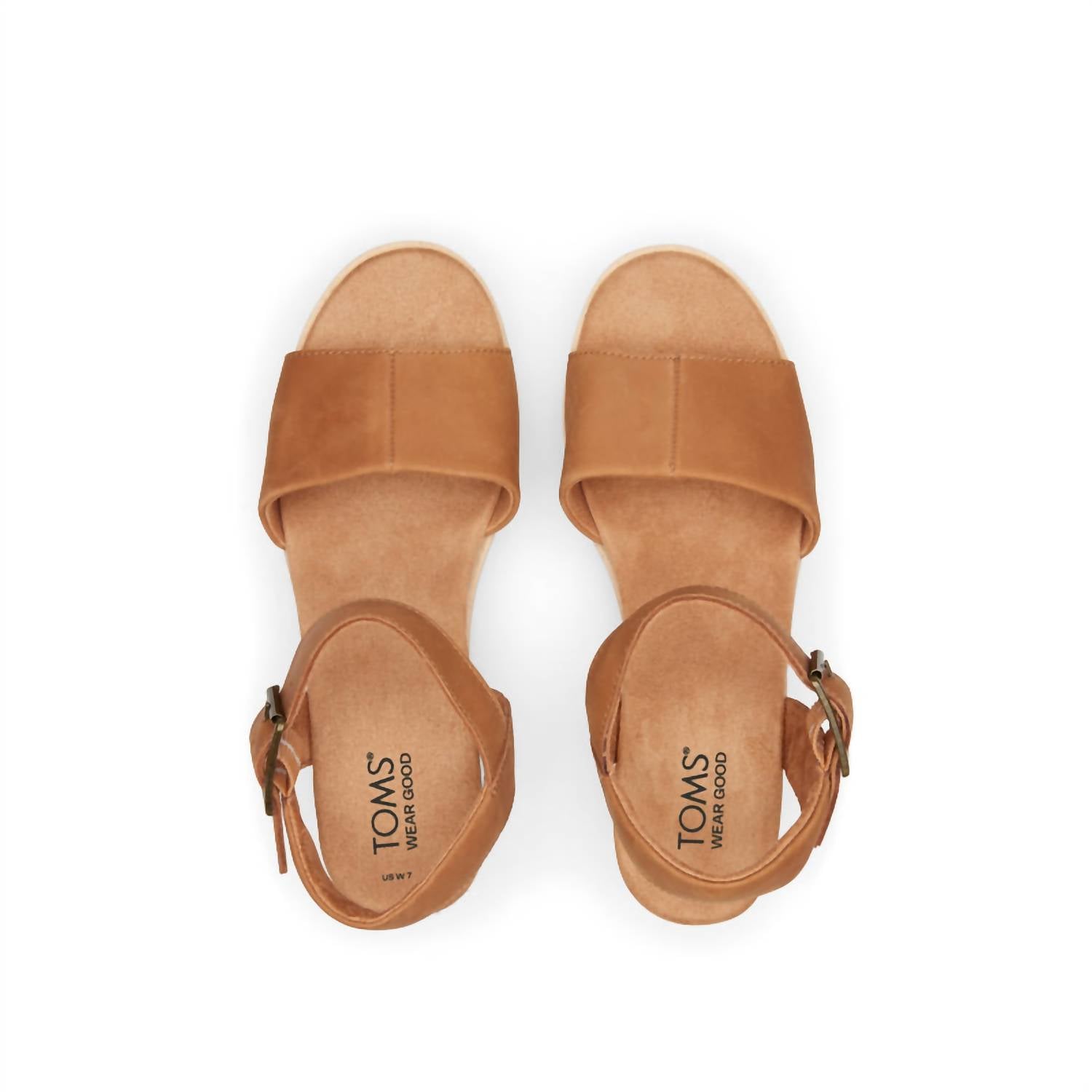Elevate your warm-weather wardrobe with the TOMS Women's Diana Wedge in Tan, featuring chic open-toe leather uppers ideal for summer birthdays. The rope-wrapped lightweight midsole pairs beautifully with an EVA outsole designed with sawtooth detail, offering both comfort and style. An adjustable buckle ankle strap ensures a secure fit, while the wedge heel, approximately 2 3/4" high, enhances your look. Enjoy the high-rebound comfort of OrthoLite® Eco X40 Hybrid™ insoles, with your purchase supporting children’s education and well-being through TOMS.