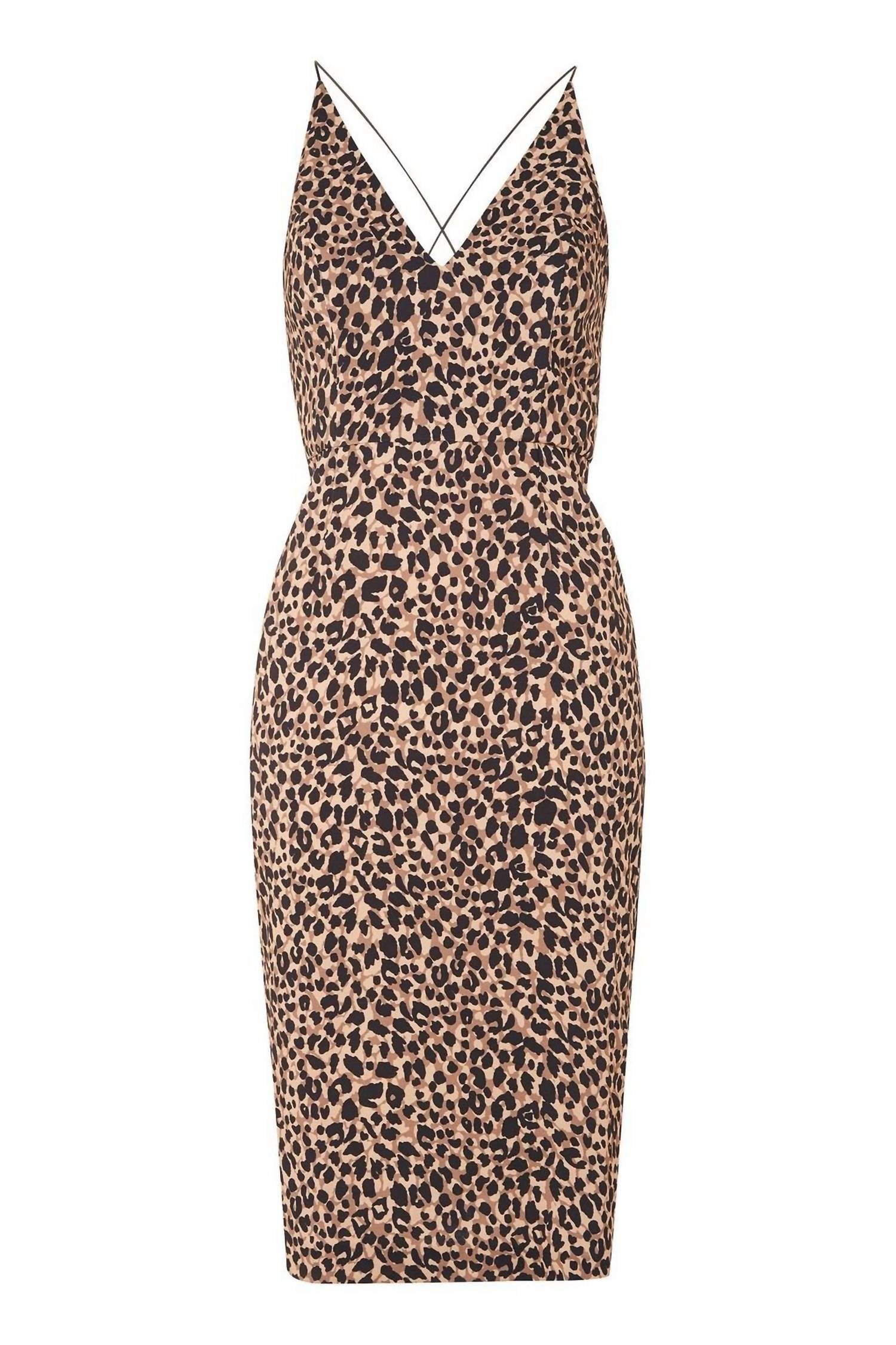 Topshop - Animal Print Plunge V Neck Bodycon Leopard Midi Dres