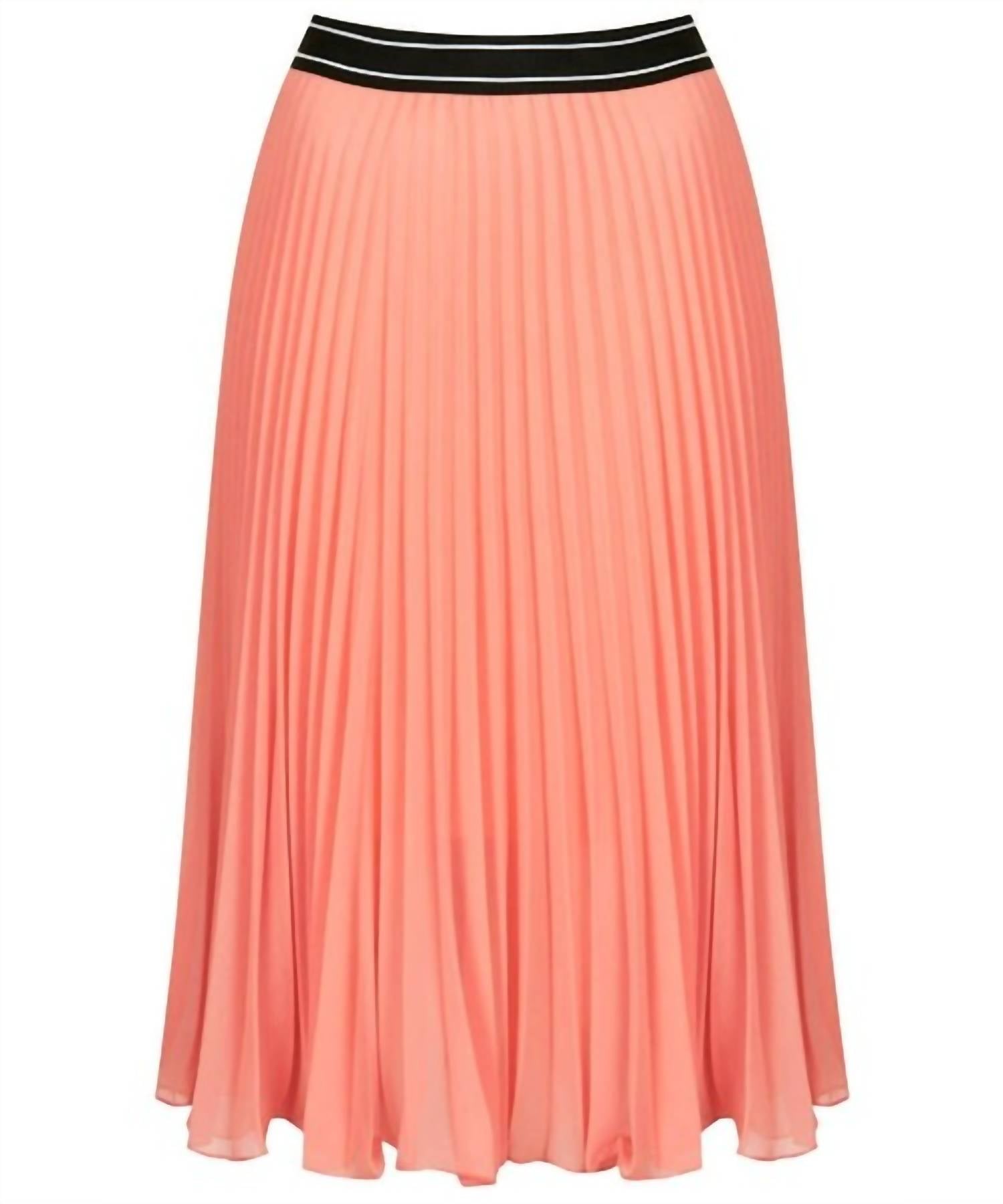 Um cós inclinado dá um toque de estilo esportivo a uma saia midi clássica confeccionada com pregas estilo raio de sol.