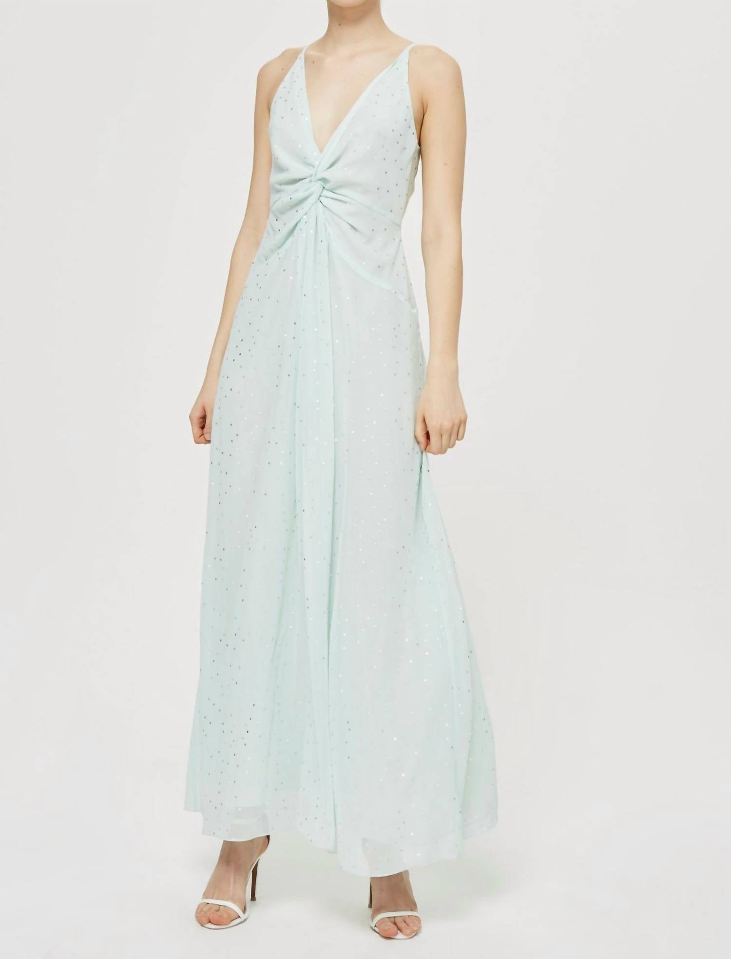 Combine este maxi com seu colar e sandálias favoritos para um look perfeito. Vestido longo de chiffon com bolinhas verde-menta Este vestido longo verde menta é delicado opção romântica para ocasiões especiais Seu formato clássico é finalizado com um detalhe torcido abaixo do busto Finalize o look com acessórios prateados 100% poliéster Lavagem à máquina Comprimento 61"