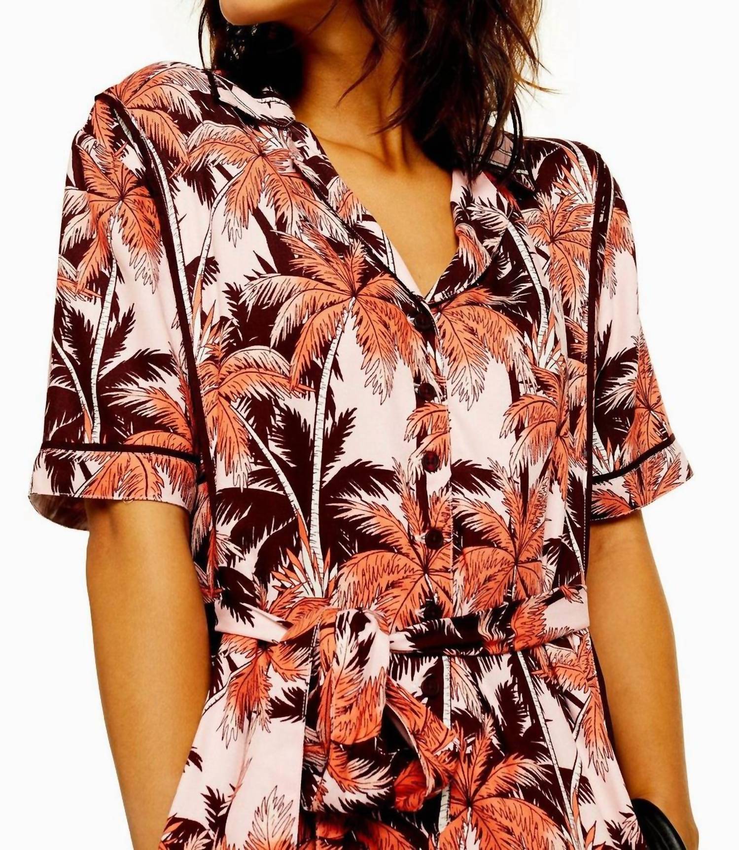 O estilo tudo-em-um encontra a atitude retrô com este macacão curto com uma estampa tropical descolada e cinto combinando