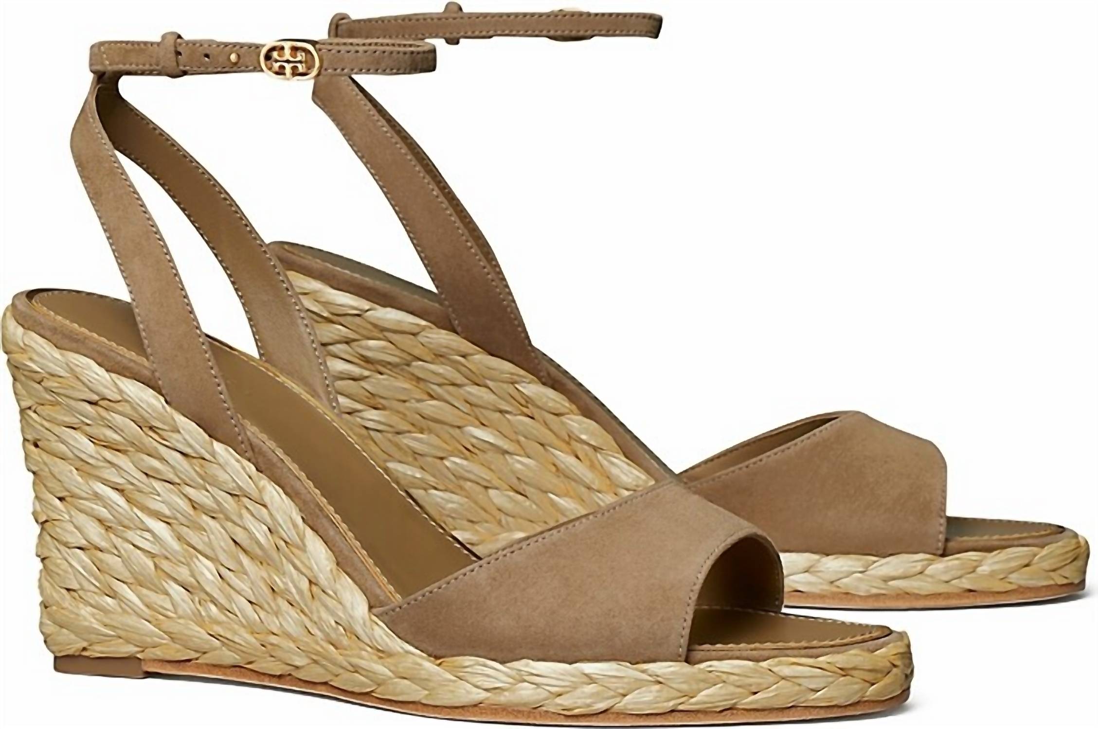 Esta sandália plataforma para o clima quente combina elegância e conforto, com cabedal em camurça macia e ráfia espanhola trançada. Finalizada com uma tira com fivela no tornozelo, é o toque de estilo perfeito para os dias ensolarados.