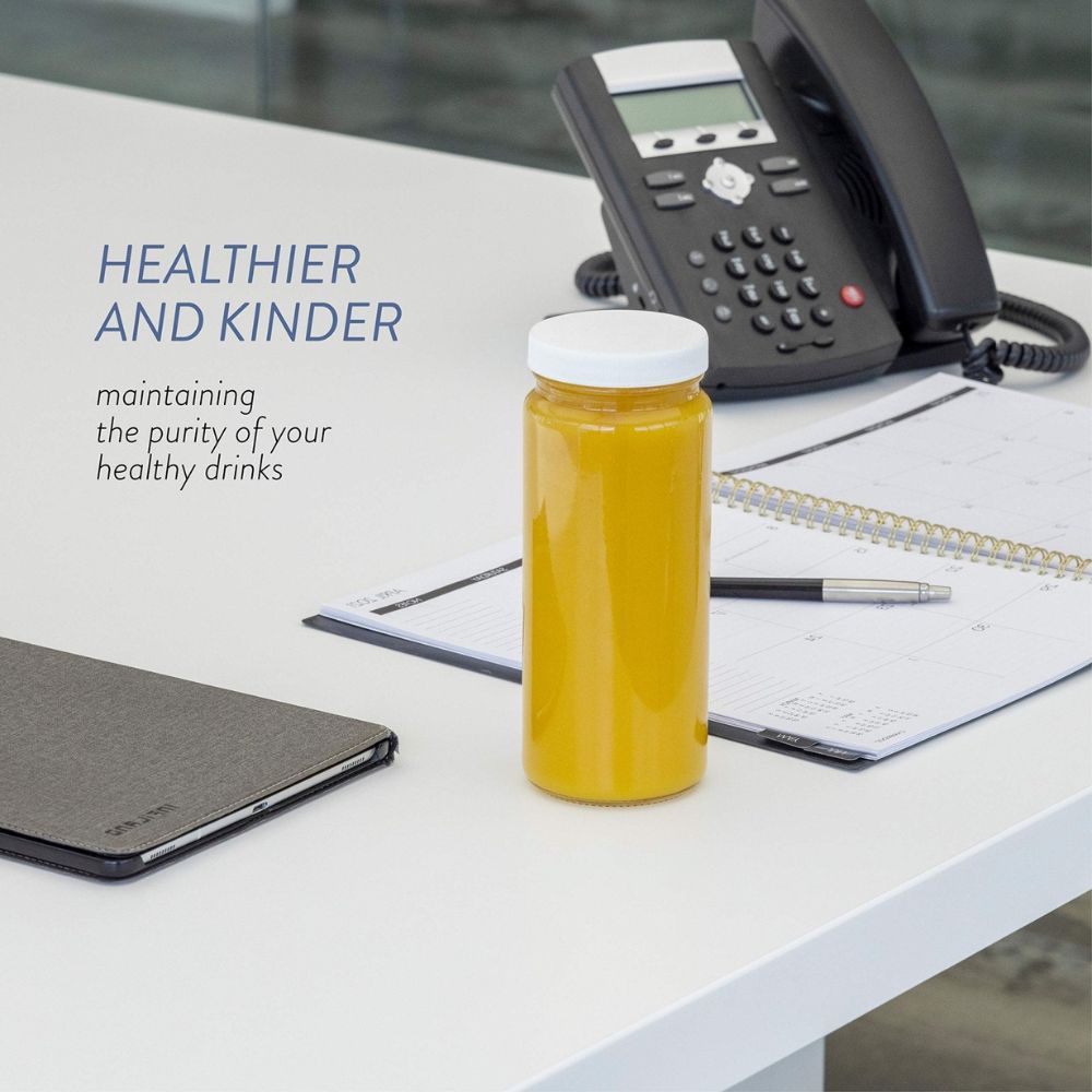 - Preparando e Armazenando - O conjunto de garrafas de vidro perfeito para fazer sucos caseiros. O vidro cristalino permite que as cores vibrantes do suco se destaquem. Os potes são ideais para armazenar smoothies, água detox, leites de nozes e shakes de proteína.