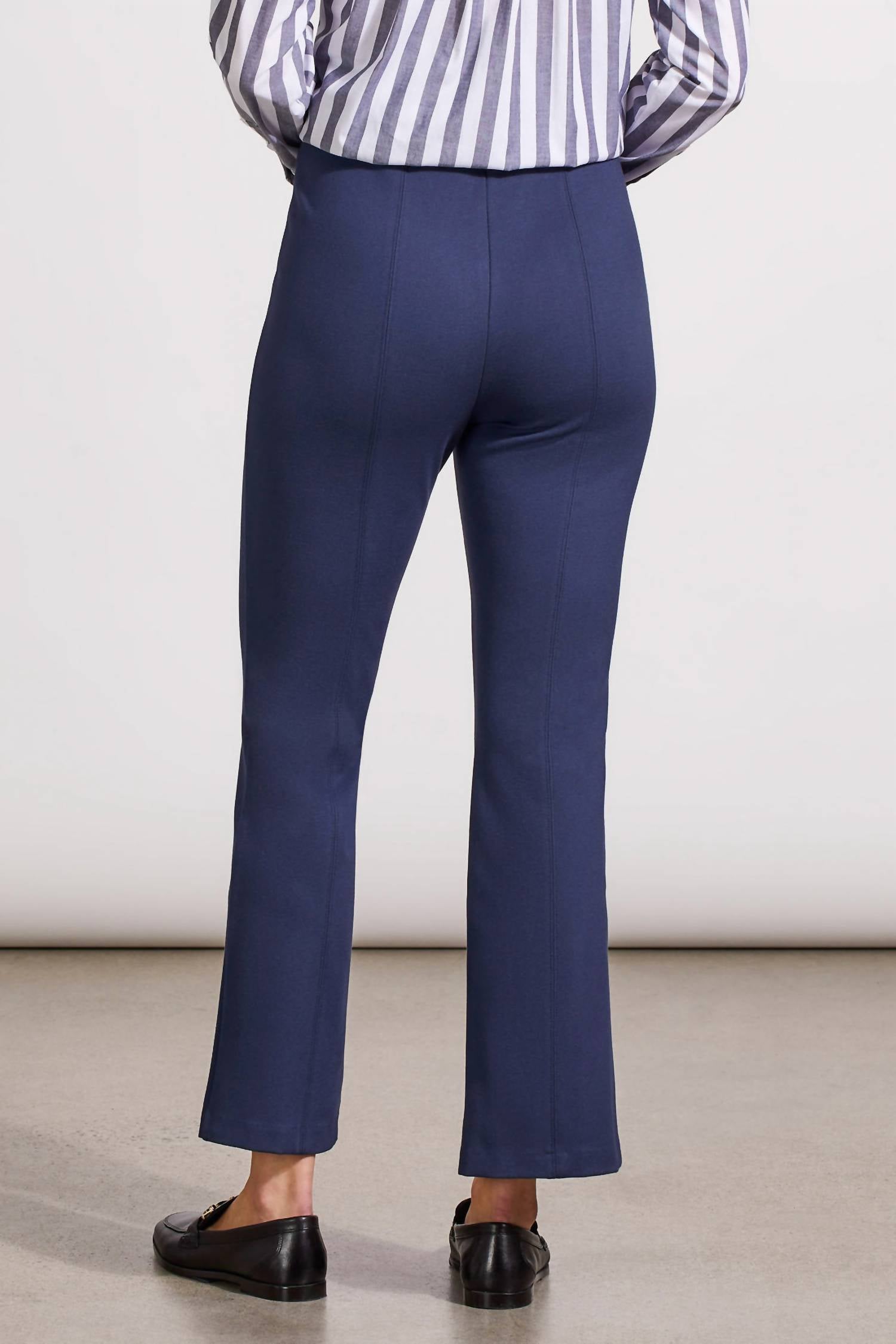 Introducing TRIBAL's Bootcut Pants in a striking Sapphire hue, crafted for style-conscious women seeking a perfect blend of comfort and elegance. These pants boast a slim-fit with a bootcut leg, featuring a 28" inseam and crafted from a soft full-body ponte knit with pintuck details for a polished look. Composition: 69% Rayon, 27% Nylon, 4% Spandex. Designed with a pull-on elastic waist and exposed elastic inside waistband for added comfort. Care: Machine wash and line dry for lasting quality.