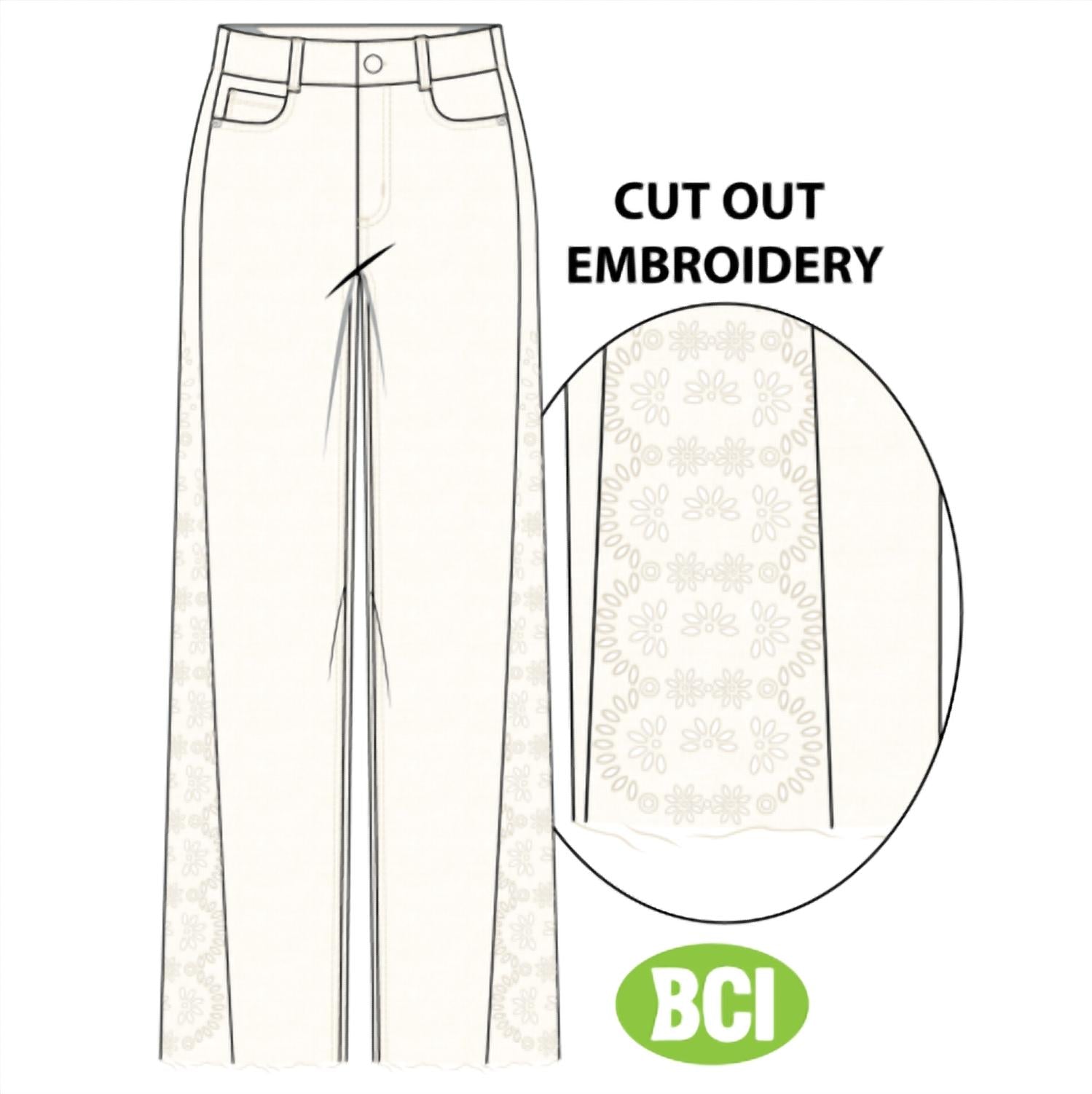Apresentamos a Calça Jeans Brooke Hugging da TRIBAL, uma adição chique ao seu guarda-roupa na sofisticada cor COCOMILK. Confeccionada em mistura de algodão, esta calça jeans de cintura alta apresenta um padrão texturizado atemporal e um corte clássico de perna larga para uma silhueta elegante. Com bolsos práticos e um prático fecho de zíper, ela oferece estilo e funcionalidade. Os cuidados são simples: lavar na máquina e secar na secadora.