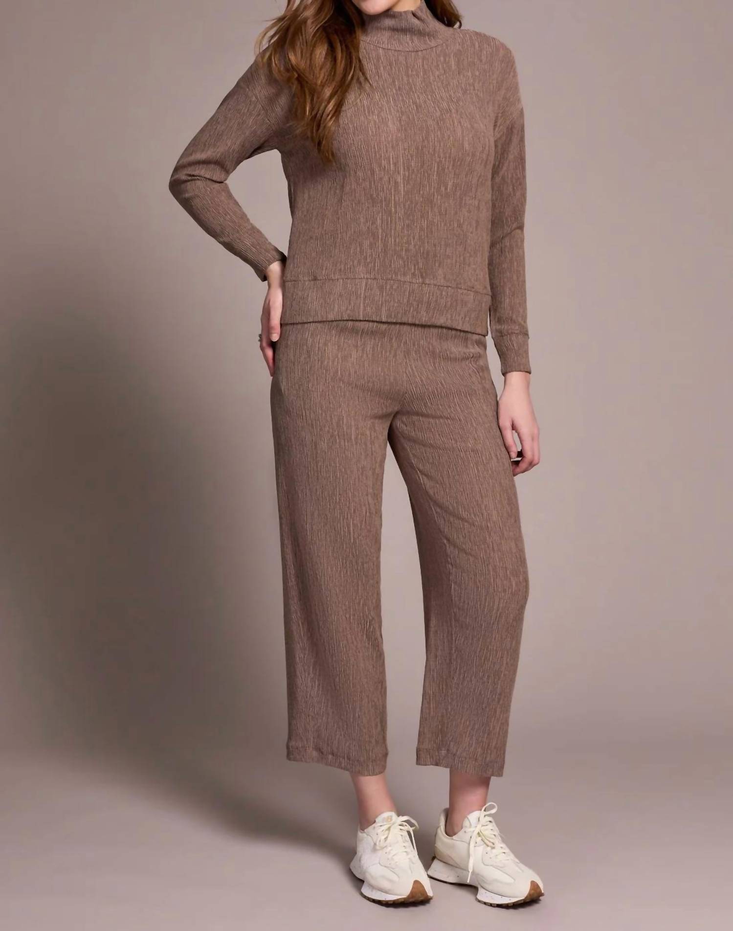 The ultimate go-to sweater, expertly crafted to provide the perfect combination of warmth and style. Its classic design and soft fabric make it a must-have addition to your wardrobe. Experience the effortless style of the TRIBAL Two-tone Crinkle Drop Shoulder Mock Neck Top, perfect for travel and everyday wear. Featuring long sleeves, this top is crafted from polyester with a chic mock neckline, offering both comfort and a flattering fit. The solid two-tone crinkle knit in a neutral fossil shade provides a polished look, while a pull-on closure ensures easy wear. Care instructions include a machine wash on a delicate cycle with cold water and line drying with low ironing if needed.