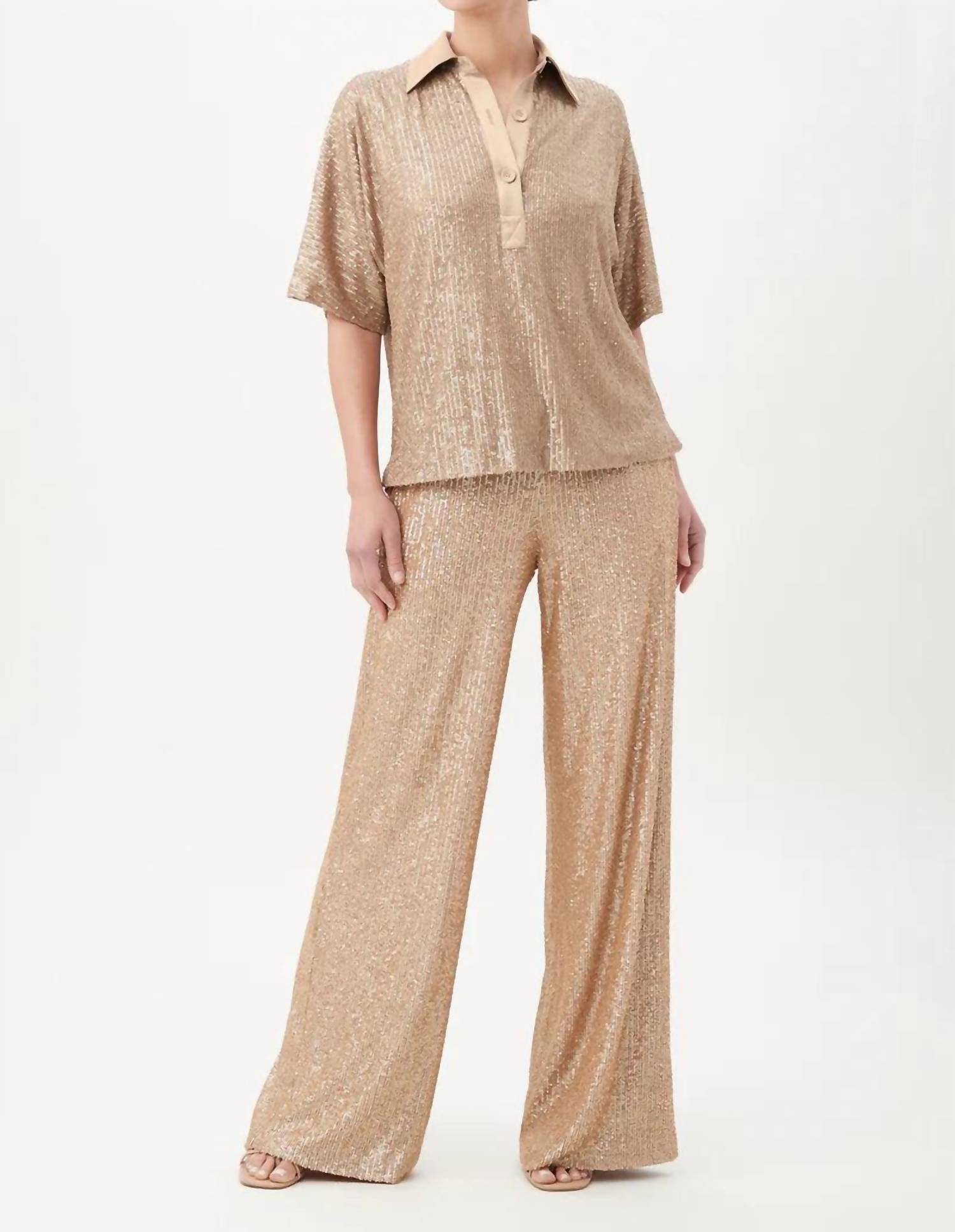 A camiseta de manga curta que você vai querer em todas as cores. Blusa de manga curta com gola de cetim contrastante e meia abertura frontal, design inspirado em polo e caimento solto. Mangas curtas dolman. Caimento justo. Malha: 92% poliéster, 8% elastano. Lantejoulas: 100% polietileno tereftalato. Somente lavagem a seco. Importado.