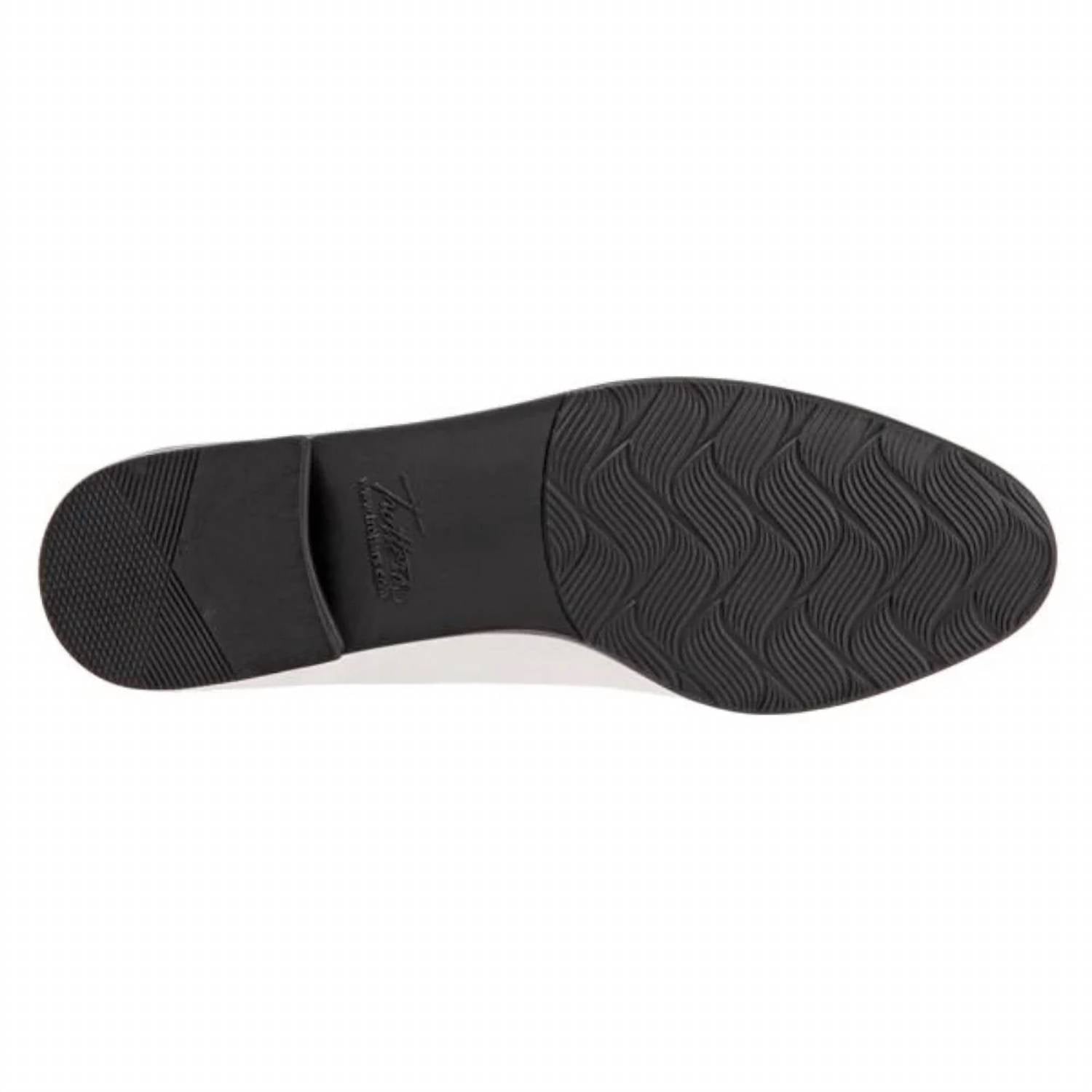 Embrace timeless elegance with Trotters' Women's Liz Tassel Leather Loafer in a sophisticated white hue. Featuring a stylish almond toe and delightful tassel adornments, this loafer blends classic design with modern comfort. Its cushioned leather footbed and lightweight, flexible rubberized sole ensure all-day comfort, while the heel height of 5/8" offers subtle lift. Perfect for the discerning woman seeking both style and practicality in her footwear.