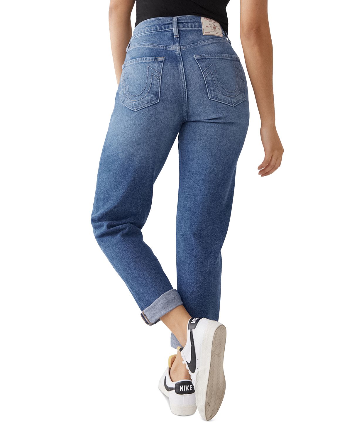 A True Religion leva seu estilo jeans a novos patamares com esta calça jeans reta com cintura alta. | Comprimento interno aprox. 28 | Cintura média; aprox. 11-1/4; abertura da perna; aprox. 13 | Fechamento frontal com botões e zíper; passantes para cinto | Barbatanas frontais | Algodão/elastano