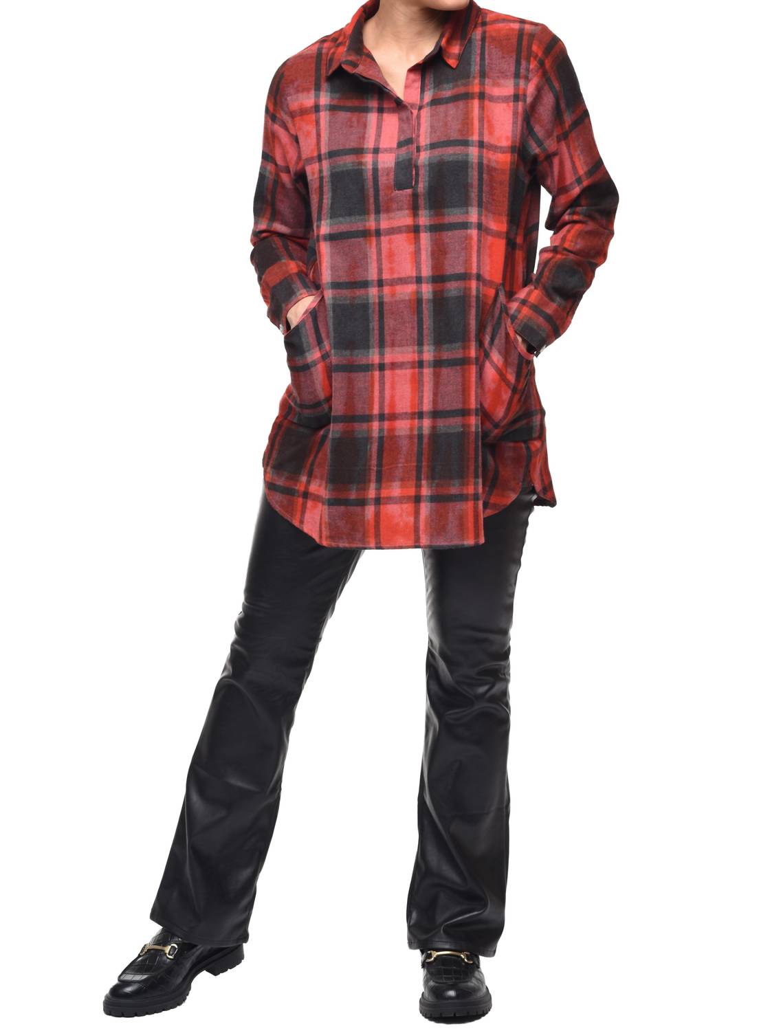 Um complemento perfeito para qualquer guarda-roupa, esta blusa clássica estilo túnica é elegante e prática. Você pode facilmente transitar do escritório para o jantar com esta blusa chique. Descubra a Blusa Brenda da Tulip Clothing, uma túnica de manga comprida 100% algodão com um charmoso xadrez de flanela Dumbarton. Com decote em V profundo, ela conta com bolsos práticos e um caimento solto para um estilo boho chique. Esta túnica oferece um comprimento confortável que varia de 80 cm a 86 cm e um caimento versátil para tamanhos de busto de 102 cm a 137 cm. Cuidados: Lavar à máquina e secar no varal para manter o visual primaveril.