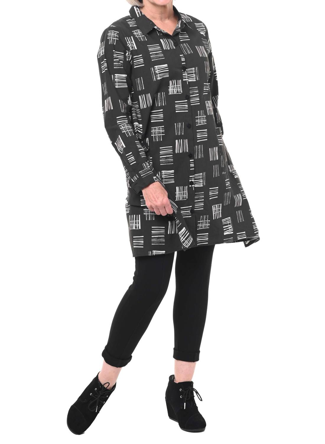 Descubra o charme versátil desta blusa túnica, projetada para ser usada em camadas ou sozinha. Sua silhueta elegante e detalhes elegantes a tornam um item essencial no guarda-roupa. Apresentamos a Túnica Destin Button Down da Tulip Clothing com uma estampa estilosa de Hash Tags, perfeita para quem busca um toque boêmio chique. Este vestido evasê de mangas compridas é confeccionado em 100% algodão, oferecendo conforto e respirabilidade com um fecho clássico de botões. Com bolsos frontais e punhos abotoados, esta túnica garante funcionalidade e estilo. Com comprimento a partir de 85 cm (PP) e instruções de cuidado que recomendam lavagem à máquina e secagem no varal, é ideal para um estilo de primavera sem esforço.