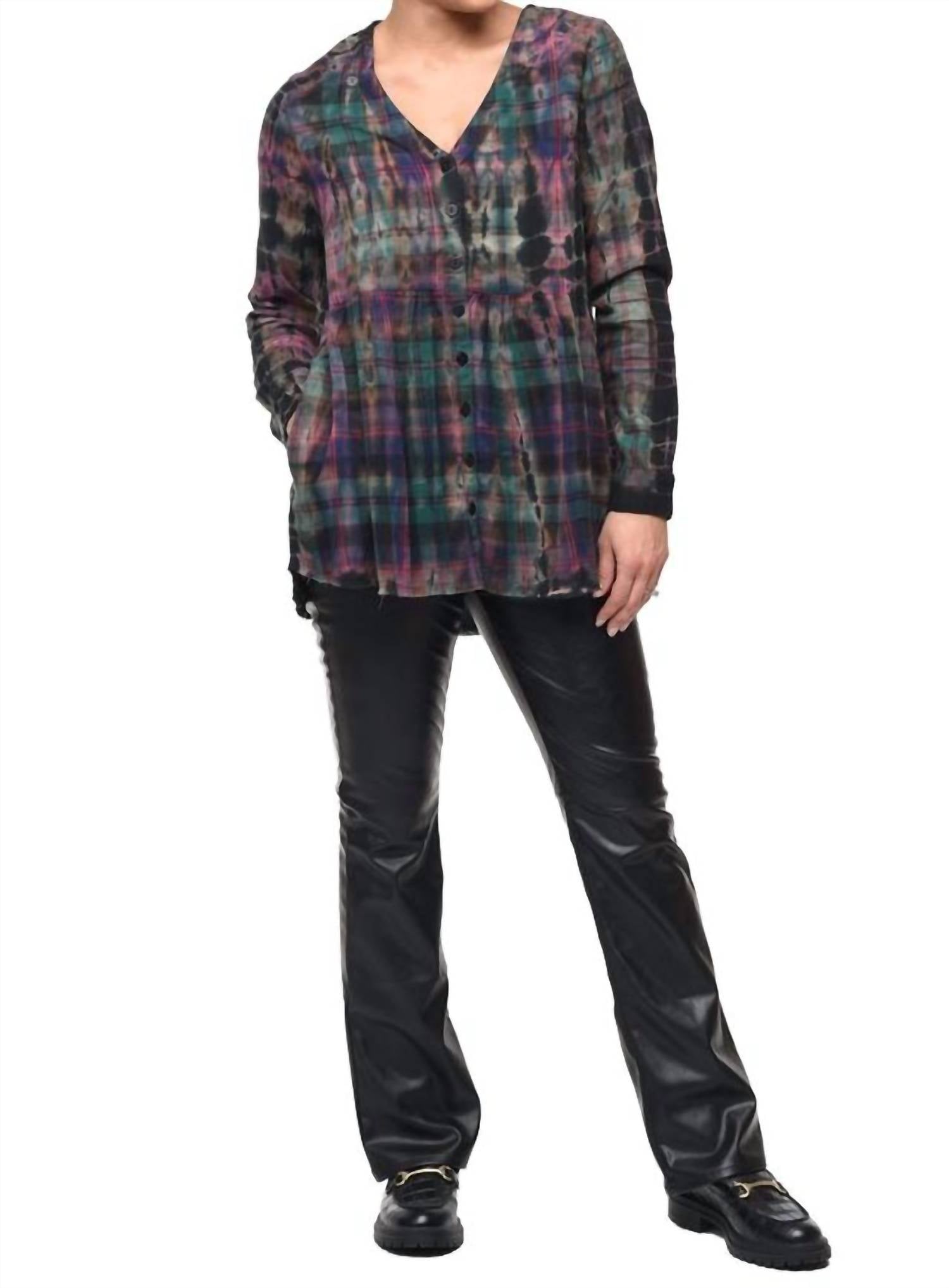 Um complemento perfeito para qualquer guarda-roupa, esta blusa clássica estilo túnica é elegante e prática. Você pode facilmente transitar do escritório para o jantar com esta blusa chique. A blusa Rosalinda da Tulip Clothing, na elegante flanela Peterhead, oferece um estilo Boho Chic perfeito para uma festa de fim de ano. Com decote em V com fecho de botão, mangas compridas, bolsos laterais e delicados detalhes de babados, esta túnica é feita de 100% algodão para maior conforto. O acabamento cru adiciona um toque único ao design, com medidas de comprimento que variam de 75 cm a 79 cm, dependendo do tamanho. As instruções de cuidado incluem lavagem à máquina e secagem no varal, garantindo fácil manutenção. A modelo veste tamanho P.