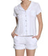 Elevate your nightly relaxation with the Short Pajama Set by Twelve Eighty Eight, featuring short sleeves and a classic collar for a touch of elegance. This women's pajama set comes in a solid white color, made from ultra-soft cotton for supreme comfort. The ruffled satin trim adds a feminine detail to the top and shorts, making it perfect for lounging or sleeping. Enjoy the luxurious feel every night with this stylish and cozy set.