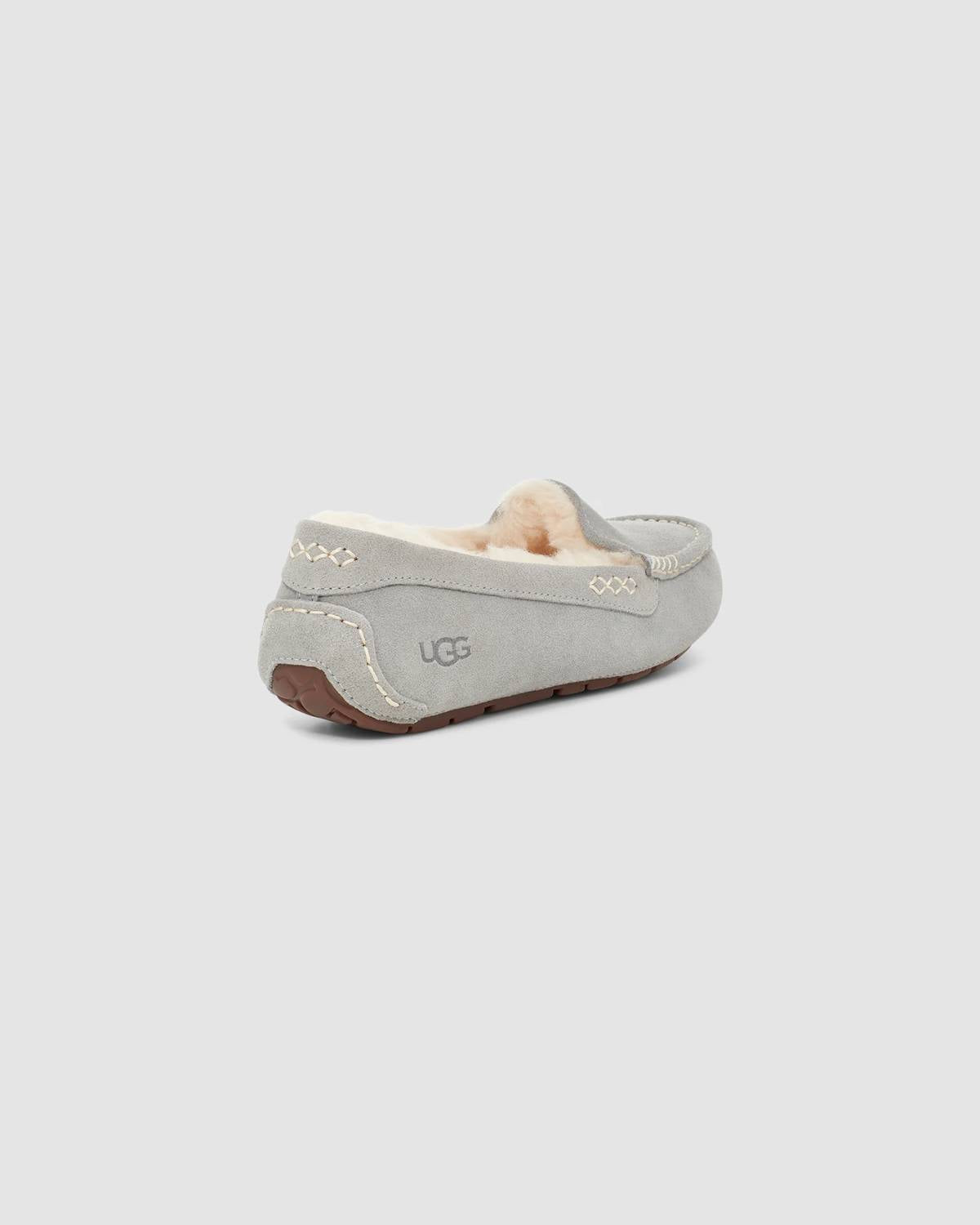 Entre no conforto luxuoso dos chinelos femininos Ansley Wide da UGG em cinza claro, perfeitos para uso em ambientes internos e externos. Estes mocassins apresentam forro e palmilha UGGplush™ de 17 mm, compostos por até 80% de lã reciclada e TENCEL™ Lyocell, proporcionando uma sensação sustentável e confortável. Confeccionados em camurça resistente à água com costuras decorativas e solado de borracha moldada durável, estes chinelos garantem estilo e praticidade. O icônico logotipo UGG® adiciona um toque autêntico a esta peça essencial e aconchegante.