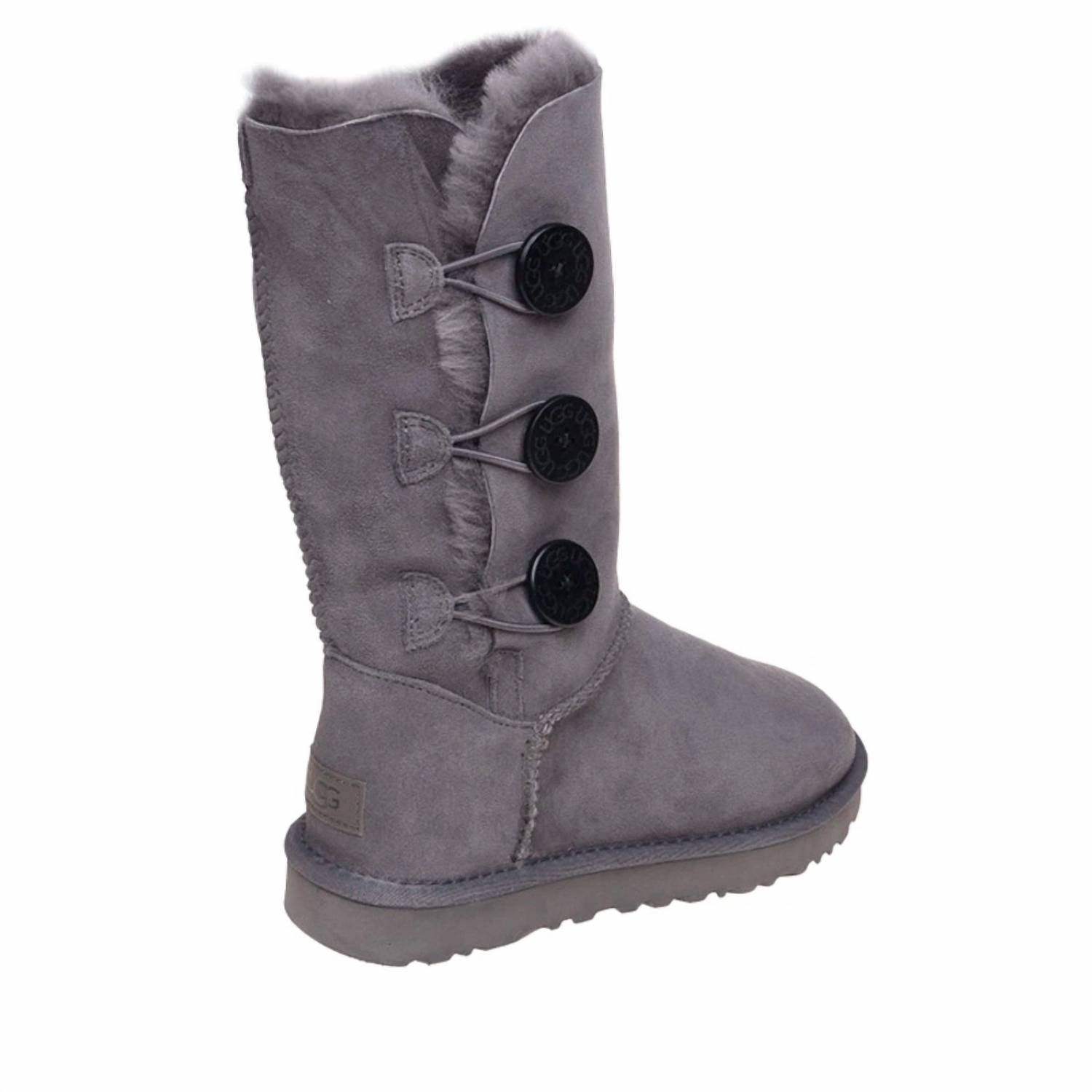 Experimente o máximo conforto com a Bota Feminina Bailey Button Triplet da UGG, confeccionada em pele de carneiro macia de 17 mm para uma sensação de luxo. Com um versátil botão de madeira e fecho elástico, estas botas de camurça cinza podem ser combinadas para maior aquecimento ou com uma gola macia e dobrada. Desfrute de amortecimento e durabilidade aprimorados com o solado SugarSole™ ou Treadlite da UGG™ e um tratamento hidrorrepelente protegido para maior durabilidade. Com cano de 29 cm de altura e etiqueta de couro no calcanhar com o logotipo UGG® gravado em relevo, esta bota é a companheira perfeita para os dias de inverno.
