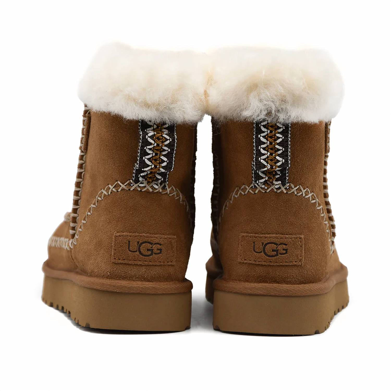 Diga olá à bota perfeita e mais versátil. A altura do tornozelo facilita a transição do dia para a noite. Use-a com sua calça jeans skinny favorita e camiseta para um look mais descontraído, ou combine-a com seu minivestido e jaqueta favoritos para uma saída à noite. Apresentamos a Bota Feminina Classic Mini Alpine da UGG, confeccionada em camurça castanha rica para um visual atemporal. Esta bota possui bico arredondado e salto plataforma de 3,1 cm, proporcionando um caimento elegante e discreto. O colarinho em pele de carneiro aparente, o para-lama em camurça e as costuras decorativas encapsulam o design icônico da UGG, realçado ainda mais pelo cadarço fixo em couro e pelo puxador UGGbraid. Desfrute de conforto superior com o forro UGGplush™ de 17 mm e o solado em EVA de cana-de-açúcar, perfeito para uma sensação ultraleve e ecologicamente correta nos pés.