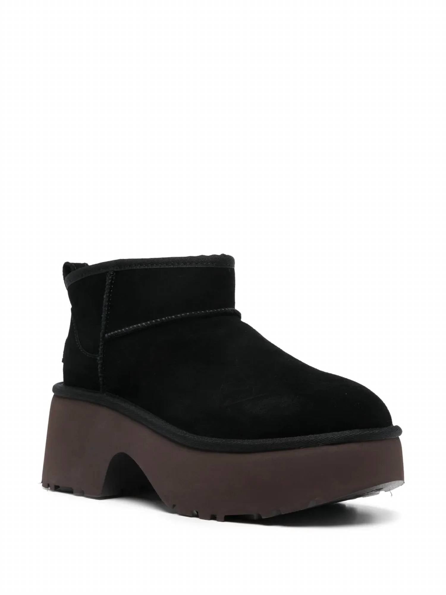 Diga olá à bota perfeita e mais versátil. A altura do tornozelo facilita a transição do dia para a noite. Use-a com sua calça jeans skinny favorita e camiseta para um look mais descontraído, ou combine-a com seu minivestido e jaqueta favoritos para uma saída à noite. Entre no estilo com a Bota Feminina Classic Ultra Mini New Heights da UGG, com um cabedal ousado em camurça preta e um forro UGGplush™ aconchegante para o máximo conforto. Projetada pensando nas mulheres, esta bota ostenta uma plataforma marcante de 7,5 cm e um salto bloco de 7,6 cm para um visual sofisticado. O calçado é complementado por uma aba traseira e um solado durável em EVA de cana-de-açúcar, garantindo estilo e funcionalidade. Destacando a moda sustentável, o forro e a palmilha são confeccionados com 60% de lã reciclada e 40% de Lyocell TENCEL™.