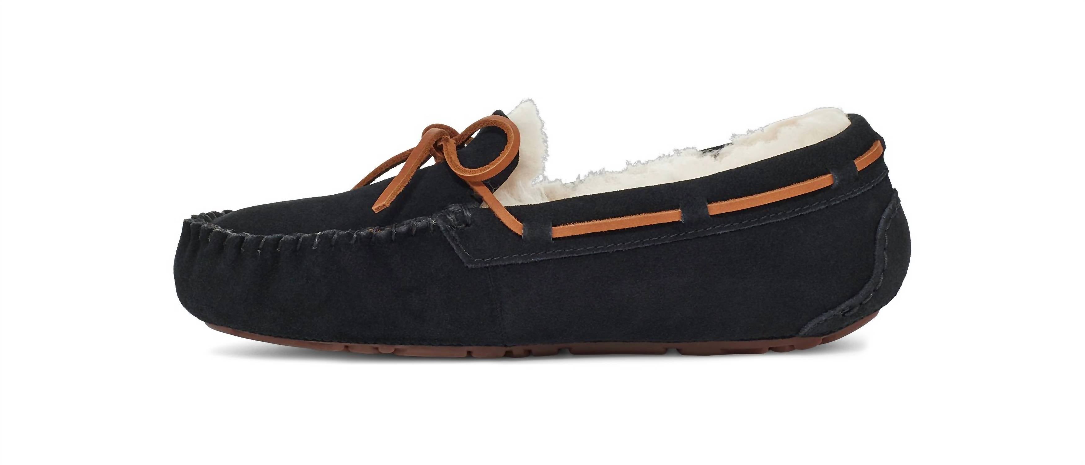 Step into comfort and style with the Women's Dakota Slipper by UGG, expertly designed in a chic shade. Crafted from water-resistant suede, these slippers feature leather laces and a molded rubber outsole for durability and versatility, allowing for both indoor and outdoor wear. Luxuriously lined with 17mm UGGpure™ upcycled wool or UGGplush™ blend, they offer warmth and comfort synonymous with the brand. Ideal for casual outings or travel, they embody sustainability and empowerment, produced in a factory that supports women through HERproject.