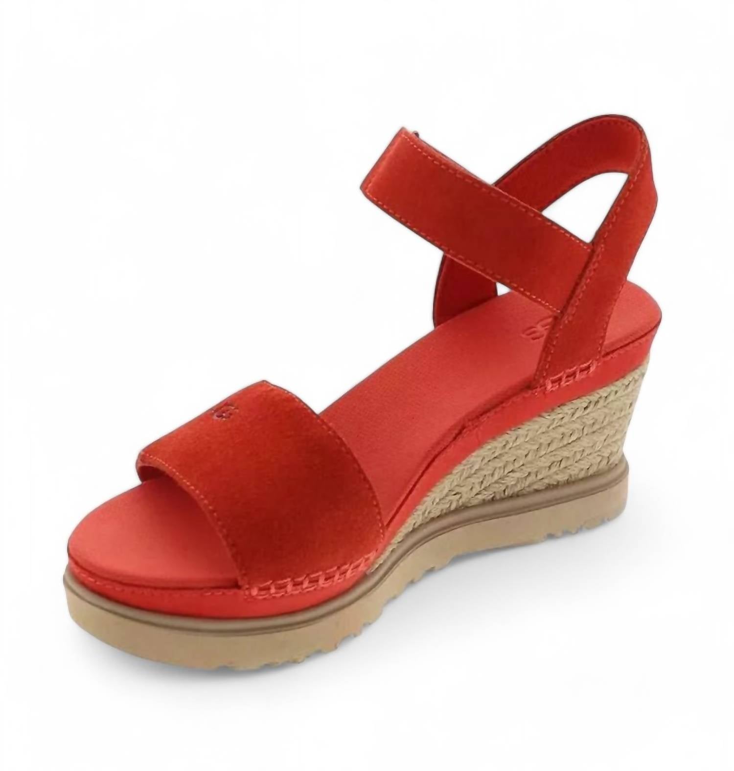 Vestidos, jeans, shorts... essas plataformas combinam com quase tudo. A Sandália Feminina Ileana Strap Wedge apresenta um cabedal luxuoso em camurça complementado por elástico para maior flexibilidade. Uma tira ajustável no tornozelo garante um ajuste personalizado, enquanto o forro têxtil e a palmilha proporcionam conforto em contato com a pele. A entressola revestida em juta adiciona um toque natural, e o solado em EVA de dupla densidade oferece excelente suporte e tração. Com uma plataforma de 3,1 cm e um salto anabela de 7,6 cm, esta sandália combina estilo e conforto sem esforço.