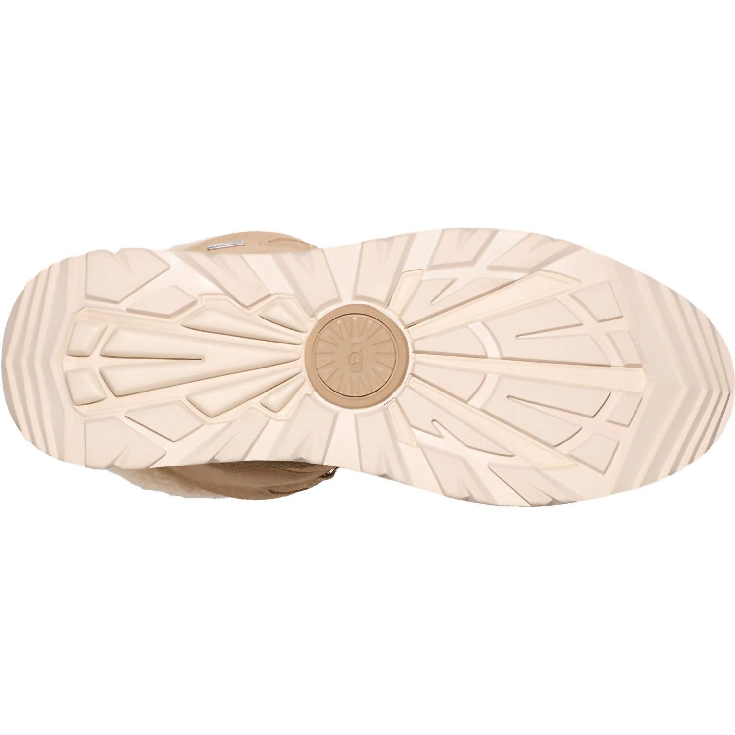Apresentamos as Botas Femininas Terretrail Cozy Lace da UGG, a combinação perfeita de conforto e funcionalidade para o inverno. Confeccionadas em camurça impermeável e com salto grosso de 7 cm, estas botas na cor areia apresentam lingueta reforçada e cano acolchoado e confortável. Com solado Spider Rubber® que proporciona tração excepcional, são ideais para chuva leve ou neve. Adote um estilo ecologicamente correto com cadarços de poliéster reciclado e forro de meia UGGplush.