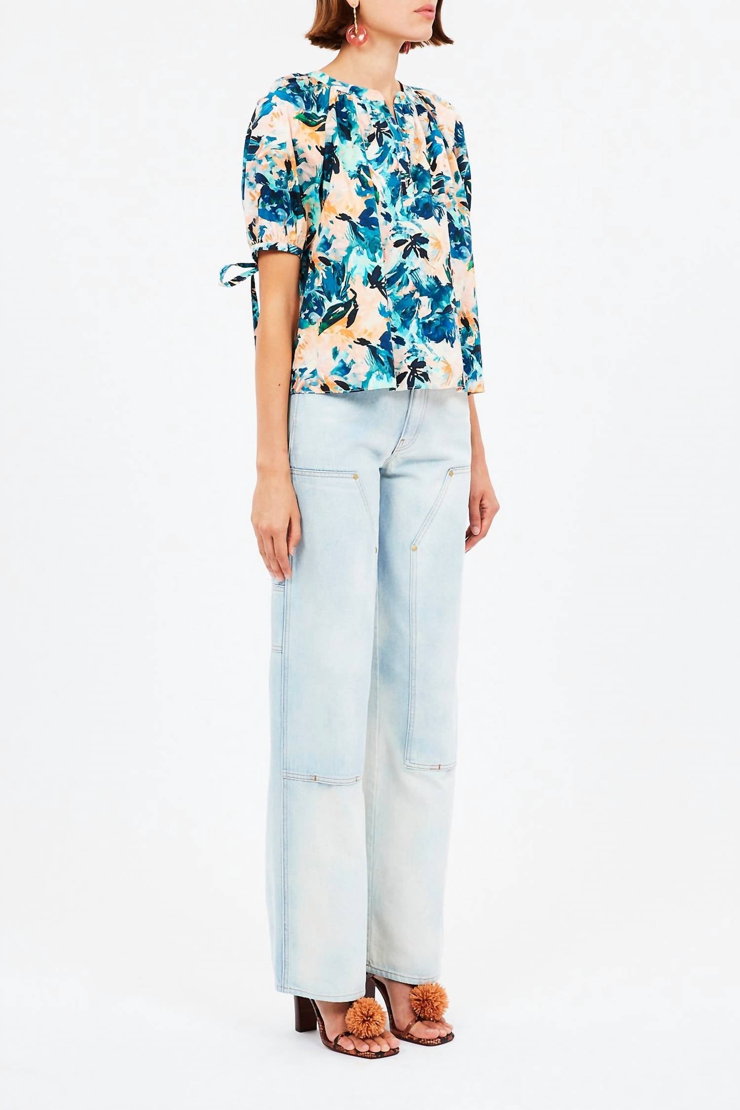 Combine isso com seus jeans e chinelos favoritos para sua próxima noite entre amigas. Apresentamos a Blusa Vienne com Punhos Amarrados da Ulla Johnson, uma escolha deslumbrante para a tendência boho chic. Esta blusa de popeline apresenta mangas curtas bufantes com punhos ajustáveis e sua icônica estampa floral adiciona um toque ousado ao seu guarda-roupa. Confeccionada em 100% algodão, oferece um caimento solto e um decote em V perfeito para escapadas de primavera. Com fecho pull-on, esta blusa torna o estilo chique sem esforço.