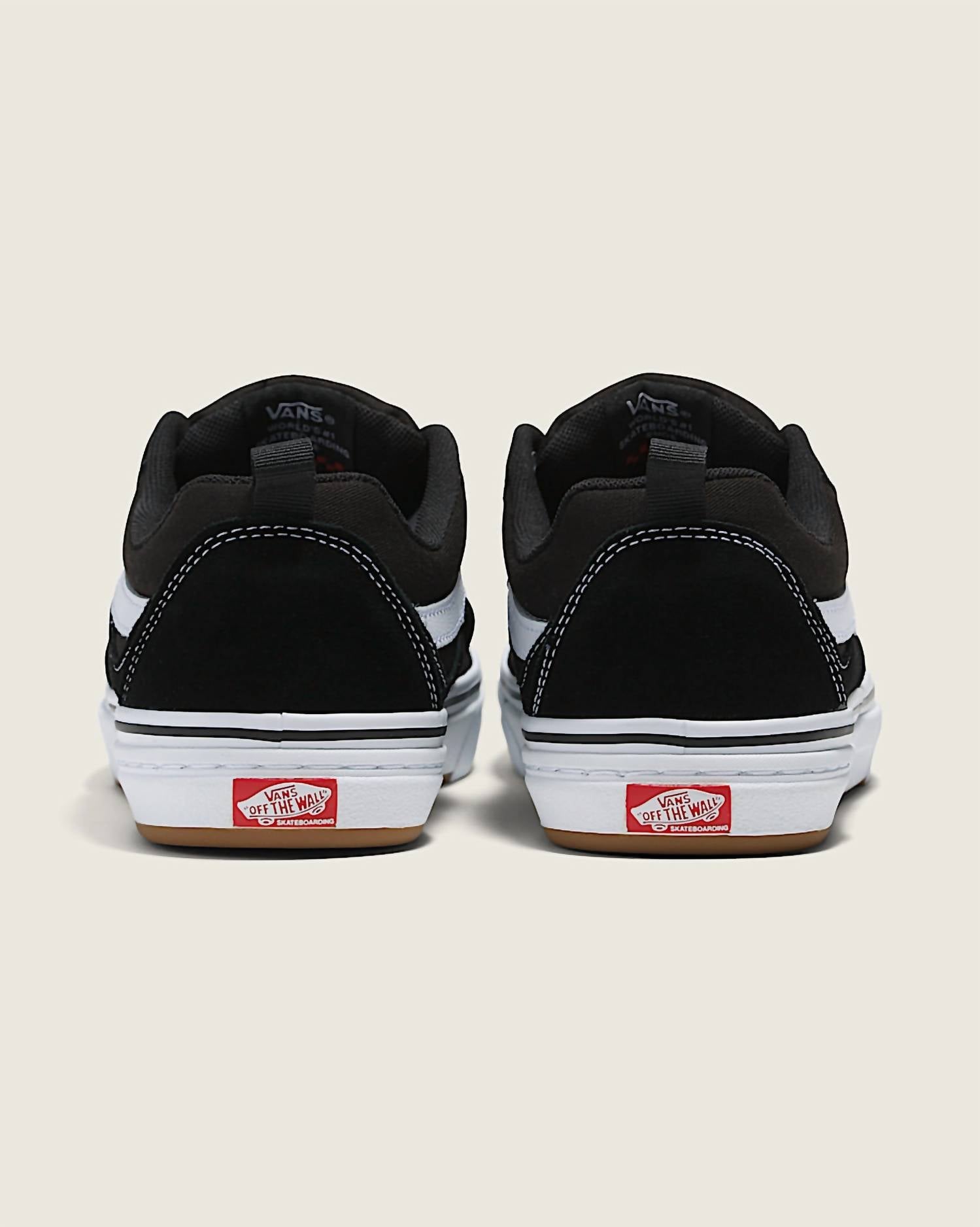 Introducing the Men's Kyle Walker Shoes by Vans, perfect for those ready to tackle any challenge. These sneakers boast unmatched durability with reinforced DURACAP underlays and offer exceptional boardfeel through the innovative WAFFLECUP construction. The shoes are crafted with classic Vans materials, combining suede, leather, and textile, and they feature the advanced PopCush cushioning for superior impact protection. With a round toe and flat heel design, these black and white shoes provide optimal comfort and support, embodying both style and functionality for the dedicated skater.