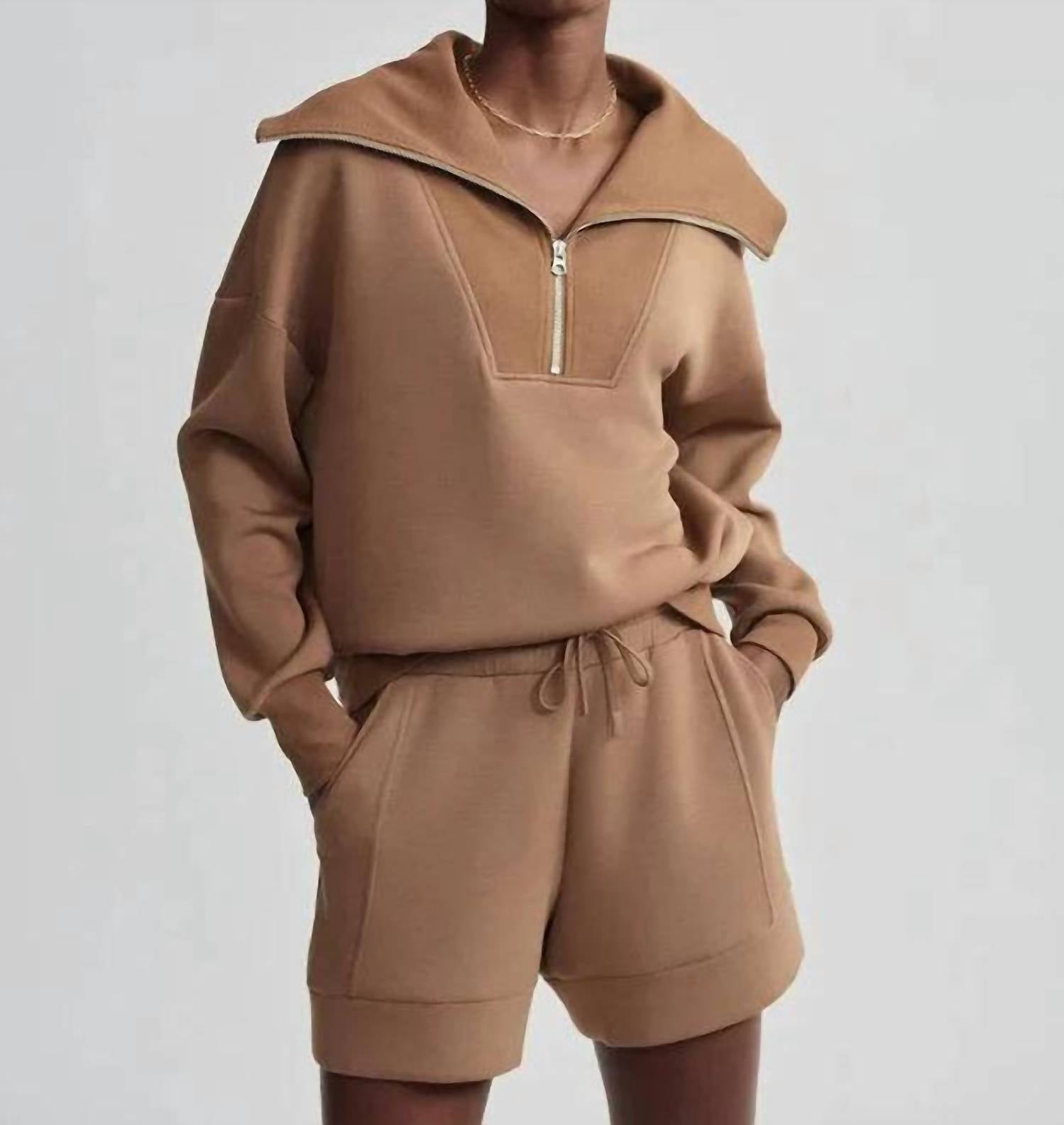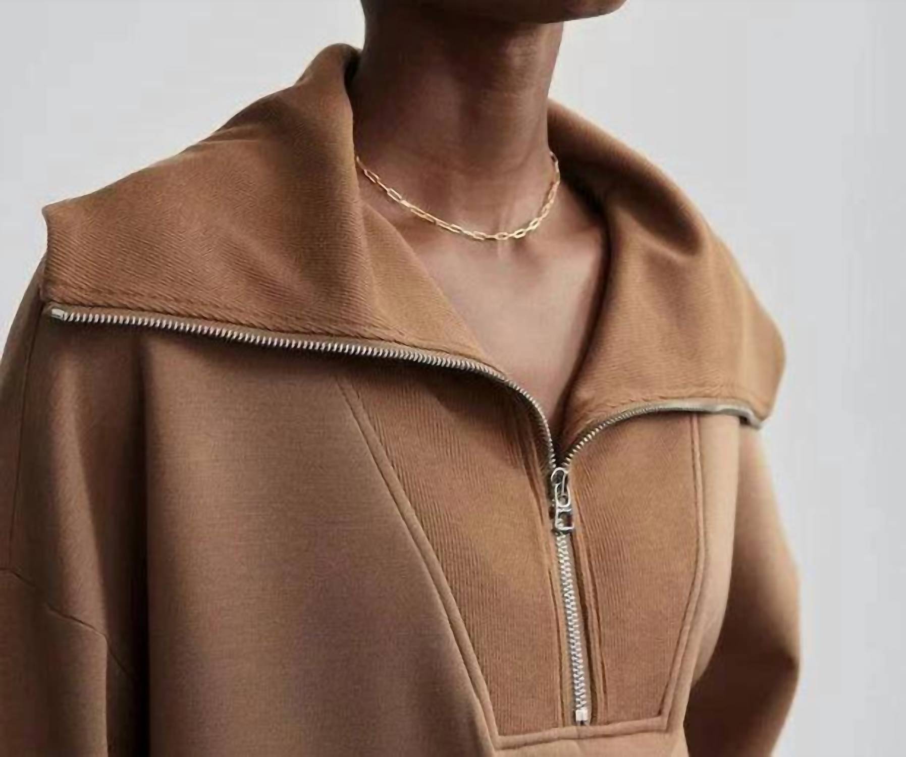 Bonita, casual e confortável. Esta jaqueta é um item essencial. Mantenha-se elegante com o suéter Catherine Half Zip da VARLEY, uma jaqueta casual oversized em um impressionante tom bronze dourado. Desenhada com mangas longas e gola alta, esta peça de padrão sólido é confeccionada em uma mistura de viscose para um toque confortável. Fechamento: zíper. Perfeito para usar em camadas e no dia a dia, este suéter apresenta um design moderno de ombros caídos, adicionando um toque de estilo a qualquer conjunto.