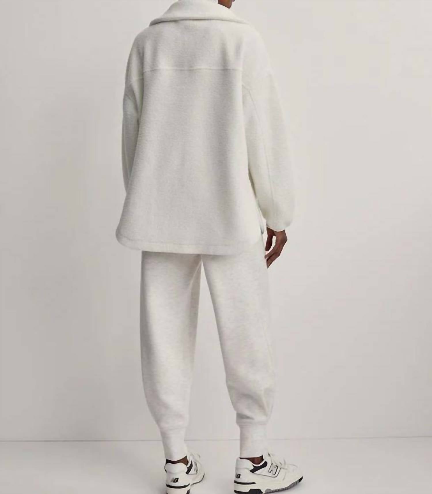 Uma jaqueta tão versátil que você pode usá-la com qualquer coisa. Apresentamos a Jaqueta Donley Fleece da VARLEY, uma peça oversized projetada para aquecimento e estilo na cor sólida Egret. Com mangas compridas e gola alta feminina, esta jaqueta é confeccionada em 100% poliéster reciclado, com fleece Borg macio para uma textura impecável. Seu fecho de zíper e bainha escalonada adicionam versatilidade ao seu guarda-roupa de inverno, combinando elegância casual com "Luxo Silencioso". O cuidado é fácil com as instruções de lavagem à máquina em temperatura fria; apenas evite alvejante, secagem em tambor, passar a ferro ou lavagem a seco. O tamanho pequeno inclui um comprimento frontal de 71 cm e comprimento de manga de 49 cm.