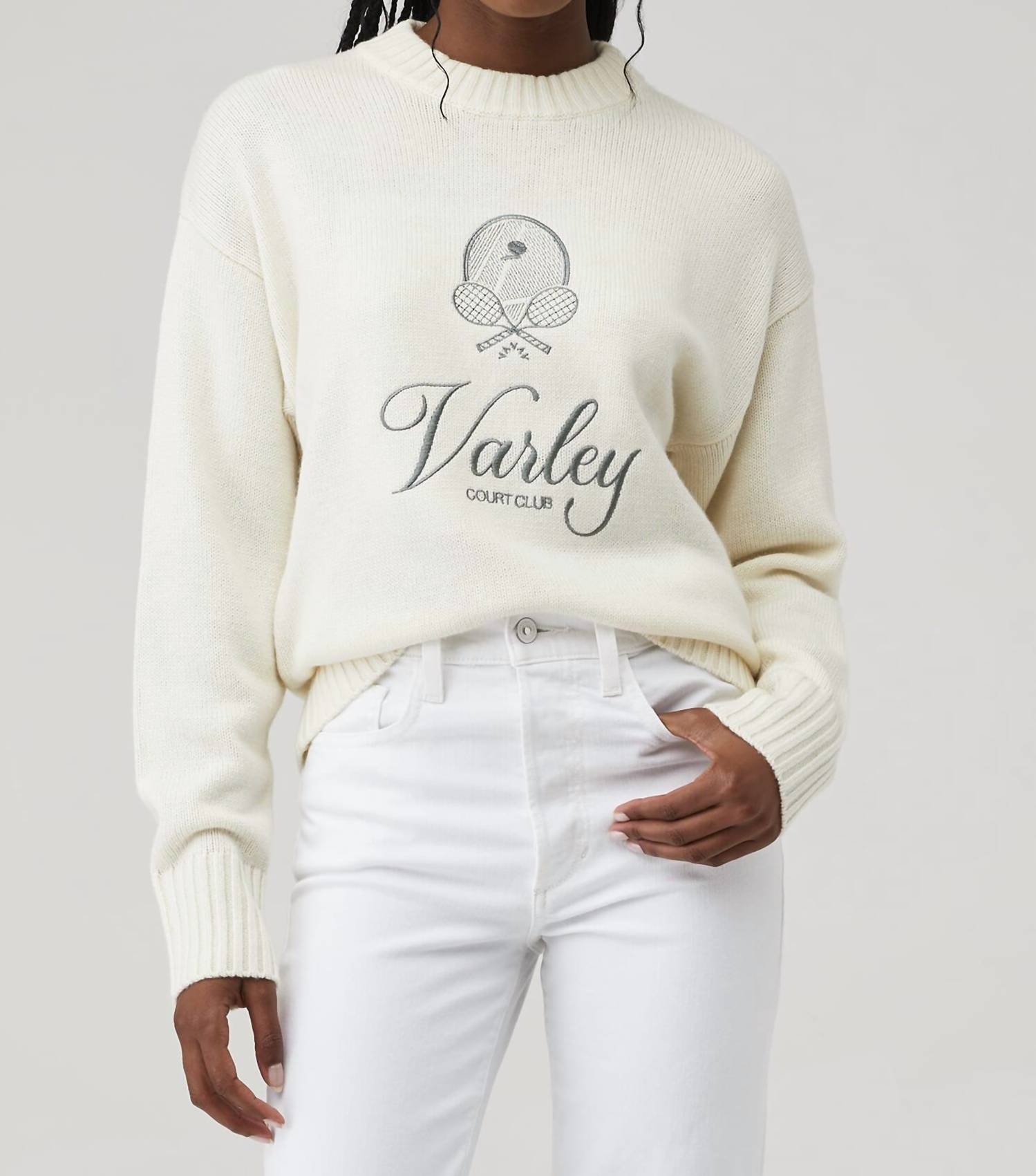 Experimente a combinação perfeita de conforto e estilo com este suéter moderno de gola redonda, projetado para elevar seu guarda-roupa sem esforço. Combine-o com seu jeans e mocassins favoritos para o look perfeito. O suéter de malha Edie Namesake da VARLEY foi criado para quem aprecia estilo e conforto. Com mangas compridas e composição de 5% cashmere, 20% lã, 48% nylon e 27% viscose, este suéter garante aquecimento e maciez. Com 59 cm de comprimento, apresenta um tom off-white complementado por bordados em verde-sálvia e fecho de pressão para facilitar o uso. Cuide desta peça luxuosa apenas lavando a seco.