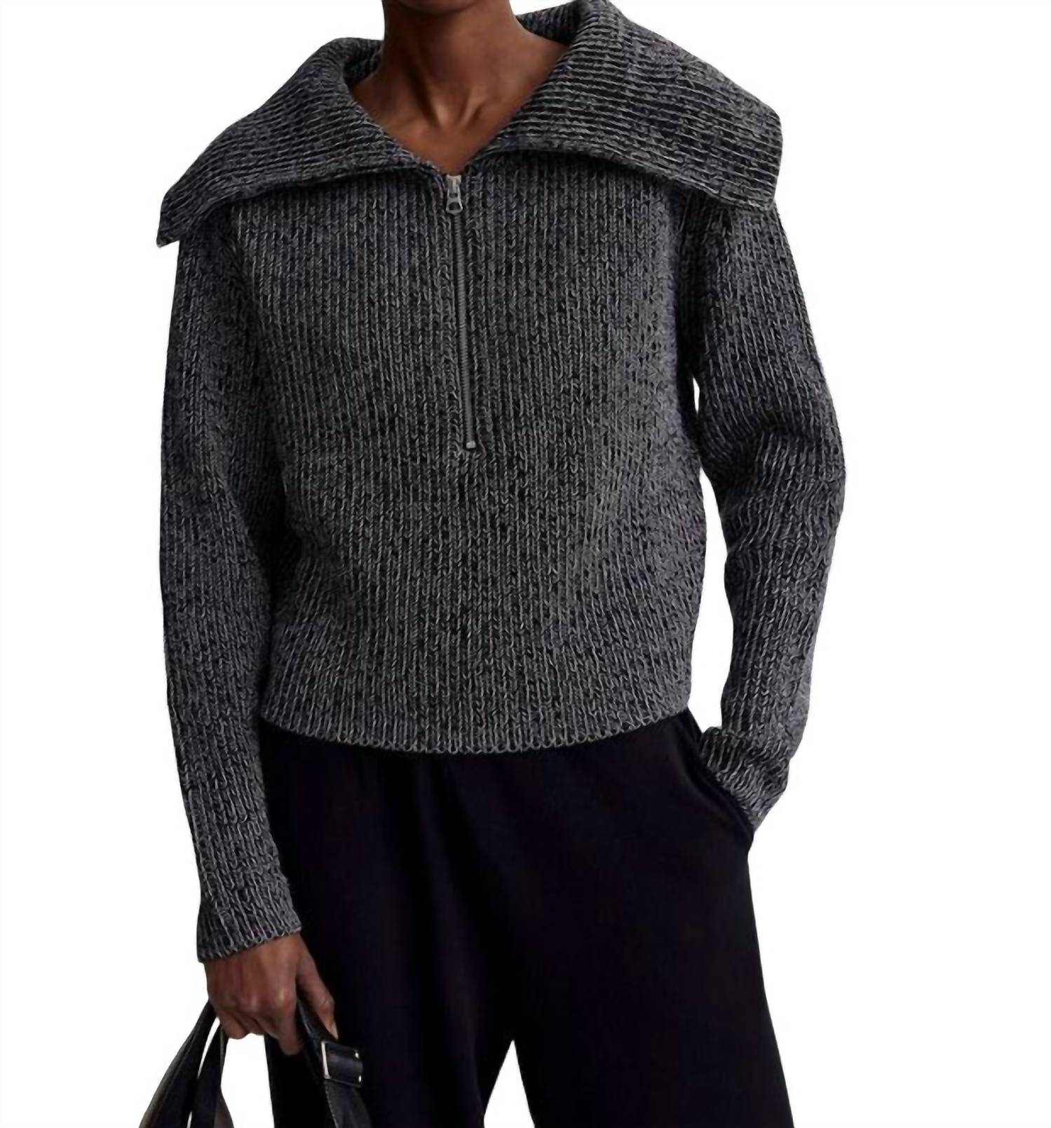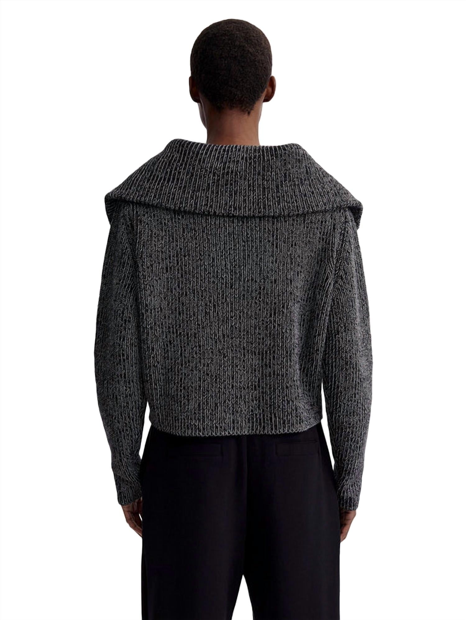 A malha de algodão com meio zíper tem caimento relaxado e corpo mais curto. Mangas finas e linhas simples e alongadas são elegantes, enquanto a gola grande drapeia sobre os ombros. A modelo veste tamanho P. Tecido: 100% algodão. Lavar à máquina em água fria.