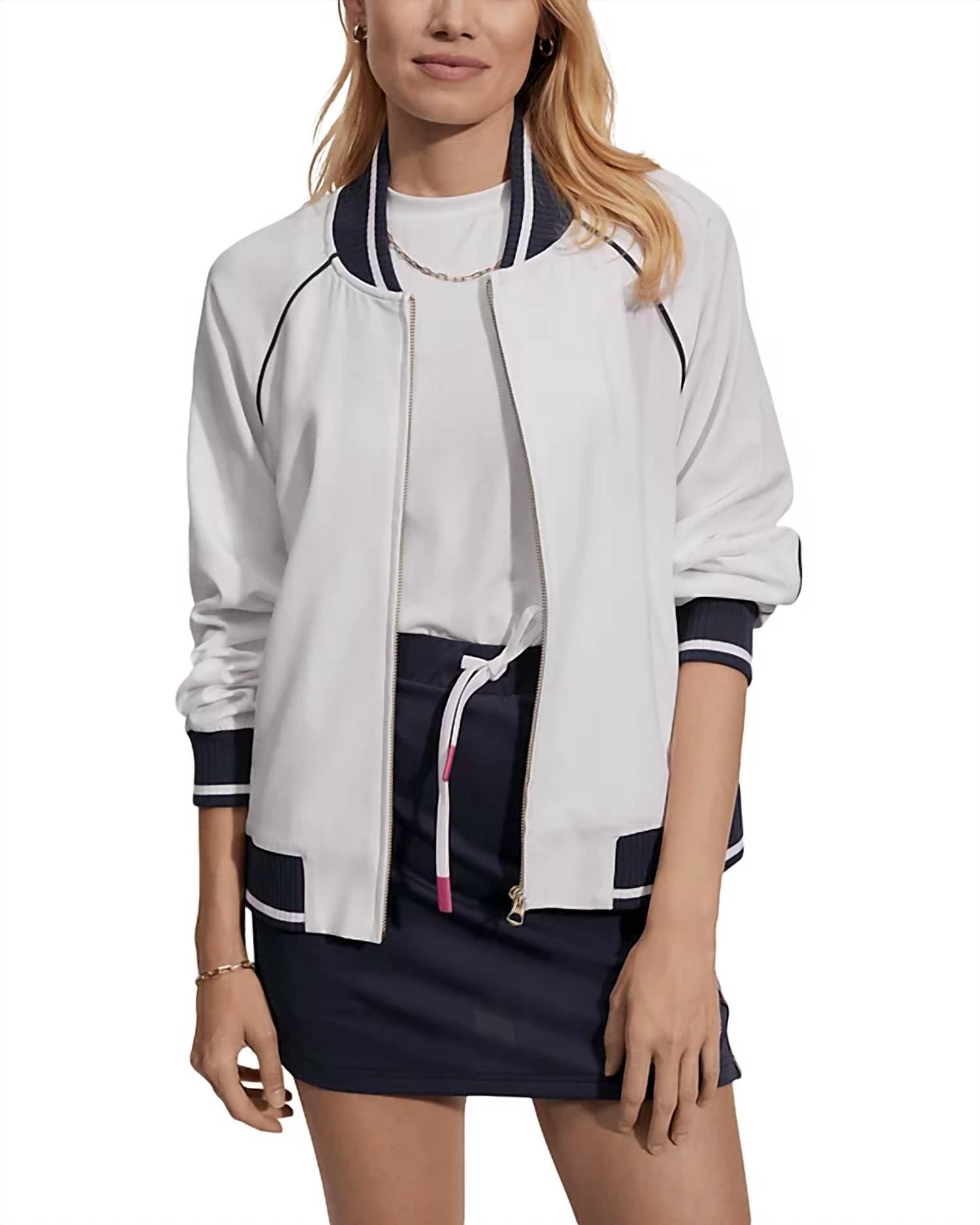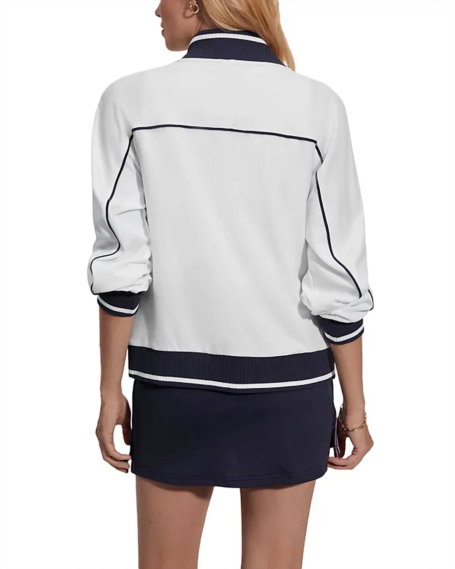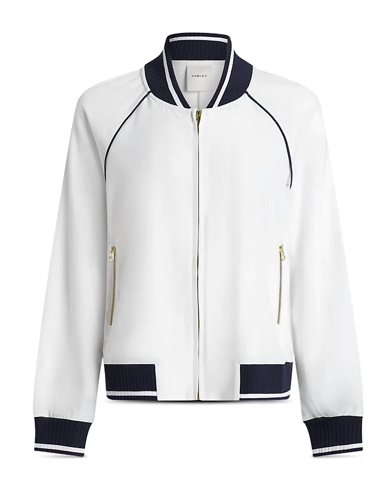 A Jaqueta Felicity Woven da VARLEY é uma adição elegante à sua coleção de athleisure, perfeita para mulheres que valorizam estilo e conforto. Esta jaqueta universitária branca possui mangas compridas e gola estilo beisebol, realçada por um fecho de zíper frontal e acabamento contrastante na gola, punhos e bainha. Confeccionada em 90% poliéster e 10% elastano, inclui bolsos práticos, conferindo um charme funcional ao seu conjunto. Cuide desta peça estampada lavando-a à máquina e secando-a na horizontal.