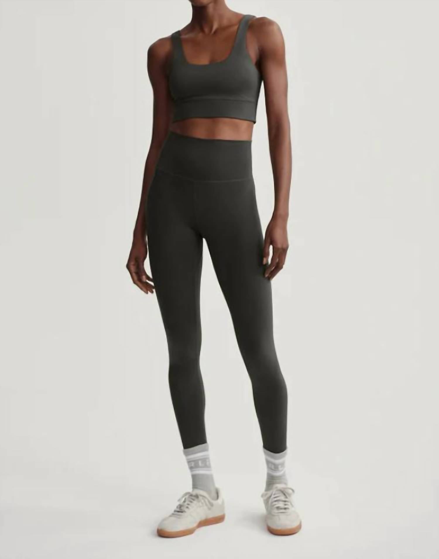 Leggings que você pode usar em qualquer ocasião. Apresentamos a Legging FreeSoft™️ da VARLEY, criada para mulheres que buscam estilo e funcionalidade. Esta legging de cintura alta em verde resina escuro sólido apresenta fecho pull-on e corte skinny, perfeita para treinos fitness. Confeccionada em 75% poliéster e 25% elastano, oferece maciez com leve compressão, reforçada por elasticidade em quatro direções e propriedades de absorção de umidade. O cuidado é simples: lave à máquina com água fria em um ciclo delicado; evite alvejantes e secadoras em tambor; passe a ferro com água fria, se necessário.