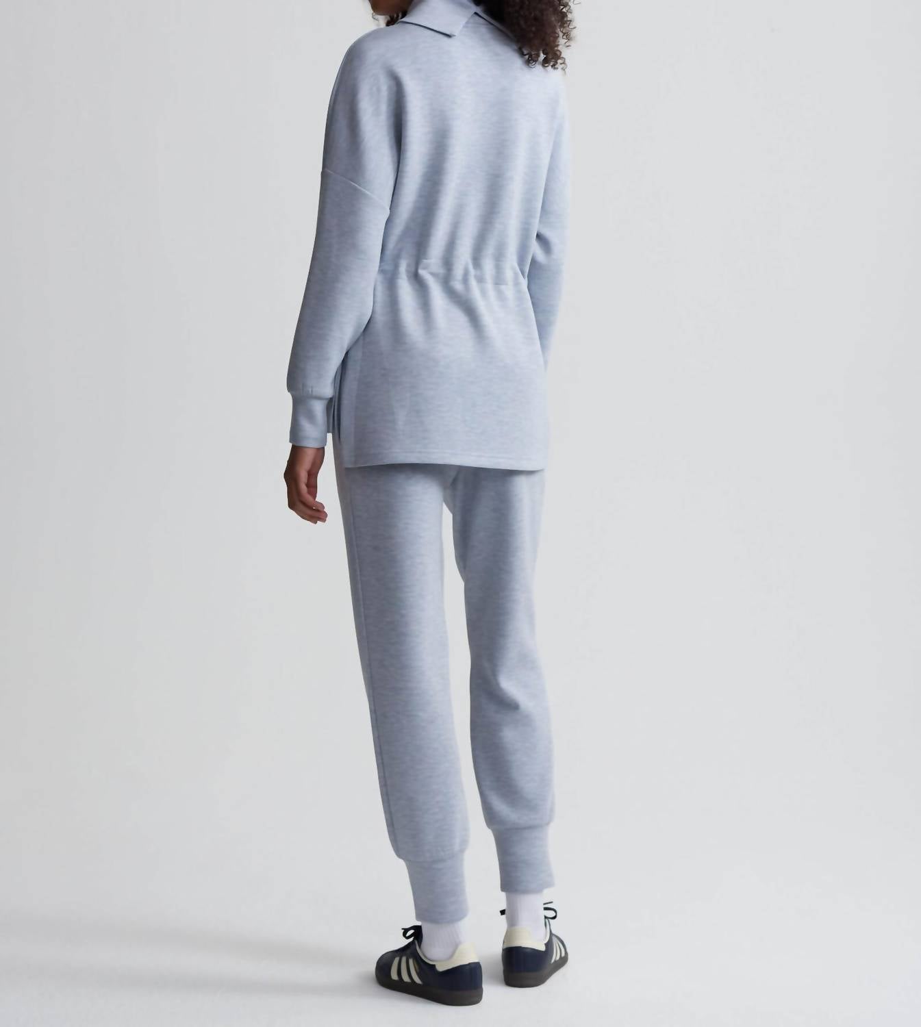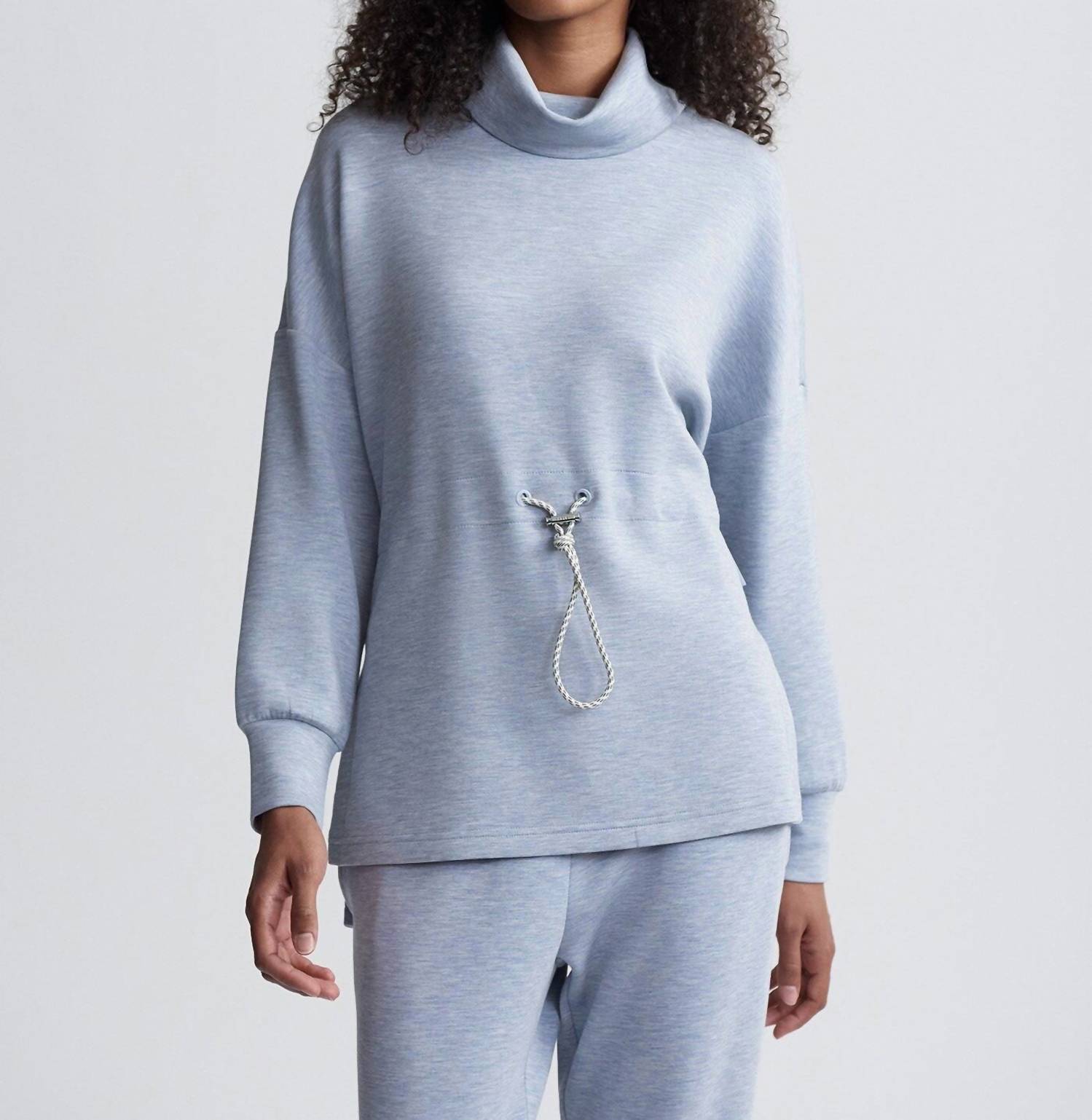A companheira perfeita para viagens de inverno e estilo athleisure. Blusa de manga comprida no sofisticado Mid Blue Marl, com gola alta dobrada e cós ajustável para um ajuste personalizado. Confeccionada em um tecido cuidadosamente combinado de 72% Viscose, 23% Poliéster e 5% Elastano. Oferece conforto e estilo. O fecho é prático e fácil de calçar. Lavar à máquina em ciclo suave e frio, lavar com cores semelhantes, amarrar os cordões antes de lavar, secar na horizontal e retirar imediatamente da máquina de lavar. O tamanho pequeno mede 67 cm de comprimento frontal e 68 cm de comprimento de manga.