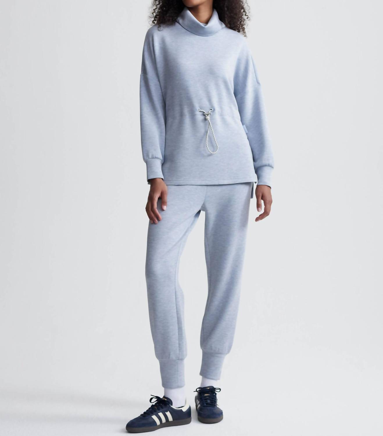 Use por baixo do seu suéter favorito ou por dentro de jeans para um visual de inverno perfeitamente elegante. A companheira perfeita para viagens de inverno e estilo athleisure. Blusa de manga comprida no sofisticado Mid Blue Marl, com gola alta dobrada e cós ajustável para um ajuste personalizado. Confeccionada em um tecido cuidadosamente combinado de 72% Viscose, 23% Poliéster e 5% Elastano. Oferece conforto e estilo. O fecho é prático e fácil de calçar. Lavar à máquina em ciclo suave e frio, lavar com cores semelhantes, amarrar os cordões antes de lavar, secar na horizontal e retirar imediatamente da máquina de lavar. O tamanho pequeno mede 67 cm de comprimento frontal e 68 cm de comprimento de manga.