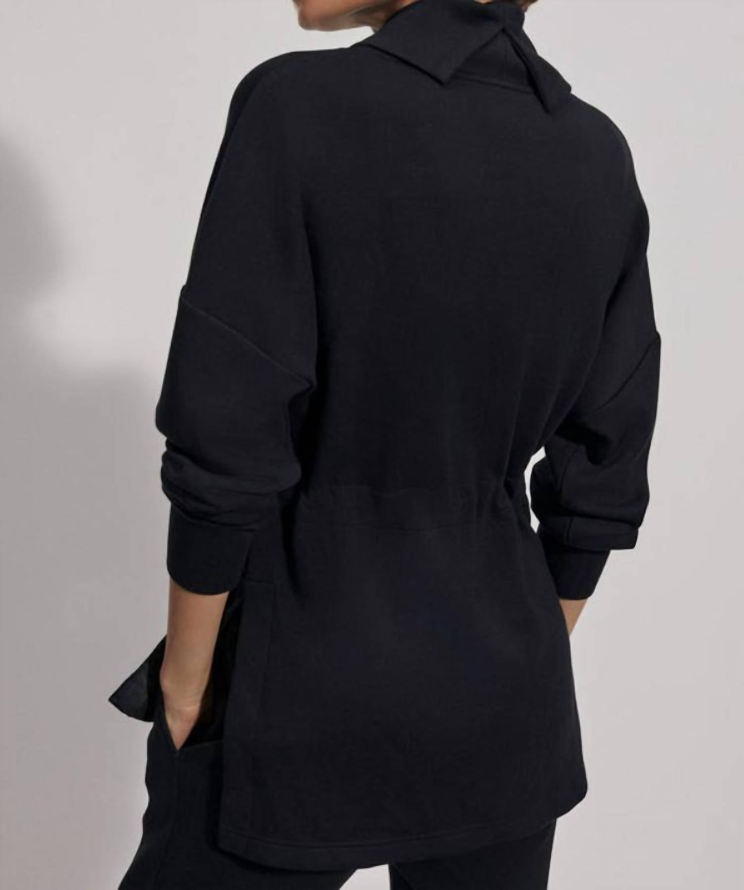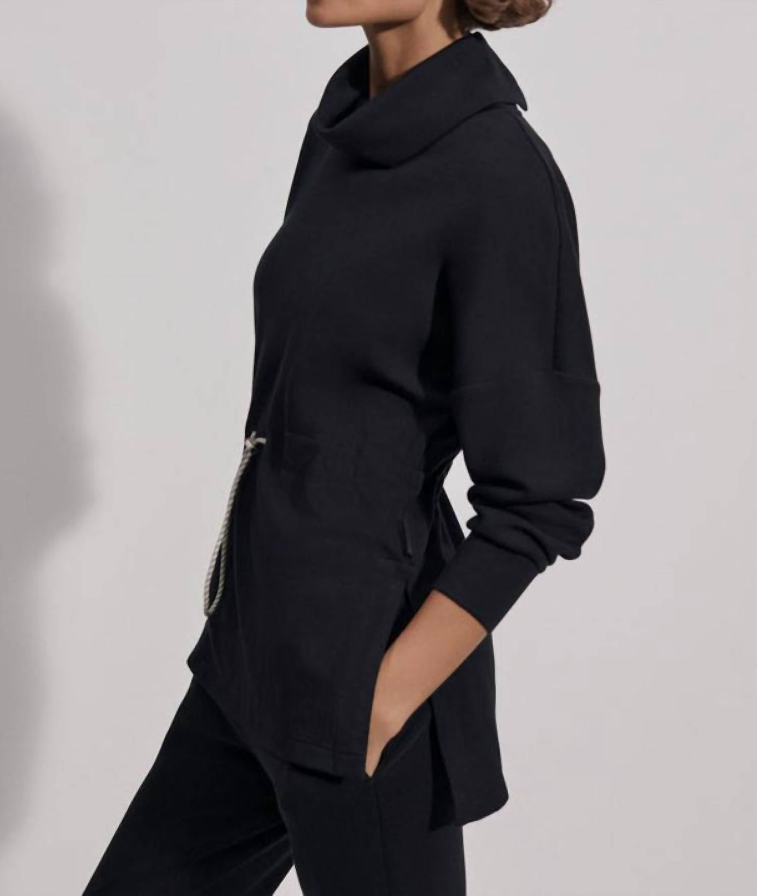 Apresentamos o Moletom Freya da VARLEY, o epítome da sofisticação aconchegante em preto clássico. Confeccionado em uma mistura de 72% Viscose, 23% Poliéster e 5% Elastano, esta peça de manga comprida garante um toque macio e leve. Possui gola alta e fechamento por cadarço na cintura para um estilo personalizável. Cuide desta peça seguindo as instruções de lavagem à máquina, evitando alvejantes e secando na secadora para melhor conservação.