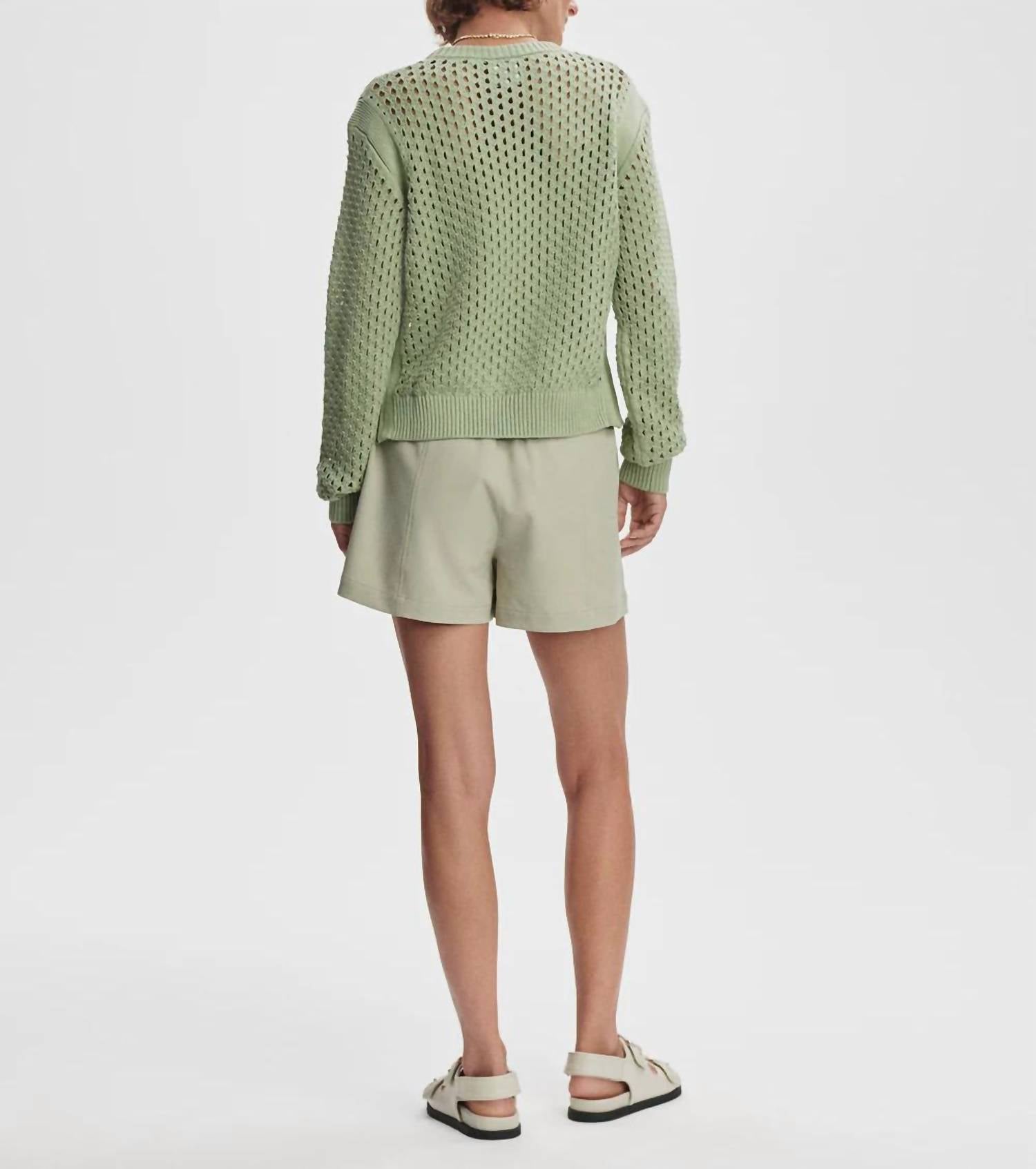 Conheça o Hains Knit Crew da VARLEY, um suéter feminino chique em um sofisticado tom Snow Sage, perfeito para o estilo minimalista da primavera. Este modelo de manga comprida é 100% algodão e apresenta uma malha texturizada Pineapple Knit para respirabilidade leve. Originário de um importado, o suéter oferece um fecho pull-on e deve ser lavado à mão para maior cuidado. Com um caimento relaxado, o tamanho pequeno mede 54 cm de comprimento frontal e 62 cm de comprimento de manga, ideal para viagens. A modelo mede 1,75 m, com 81 cm de busto, 61 cm de cintura e 86 cm de quadril, e veste tamanho pequeno.